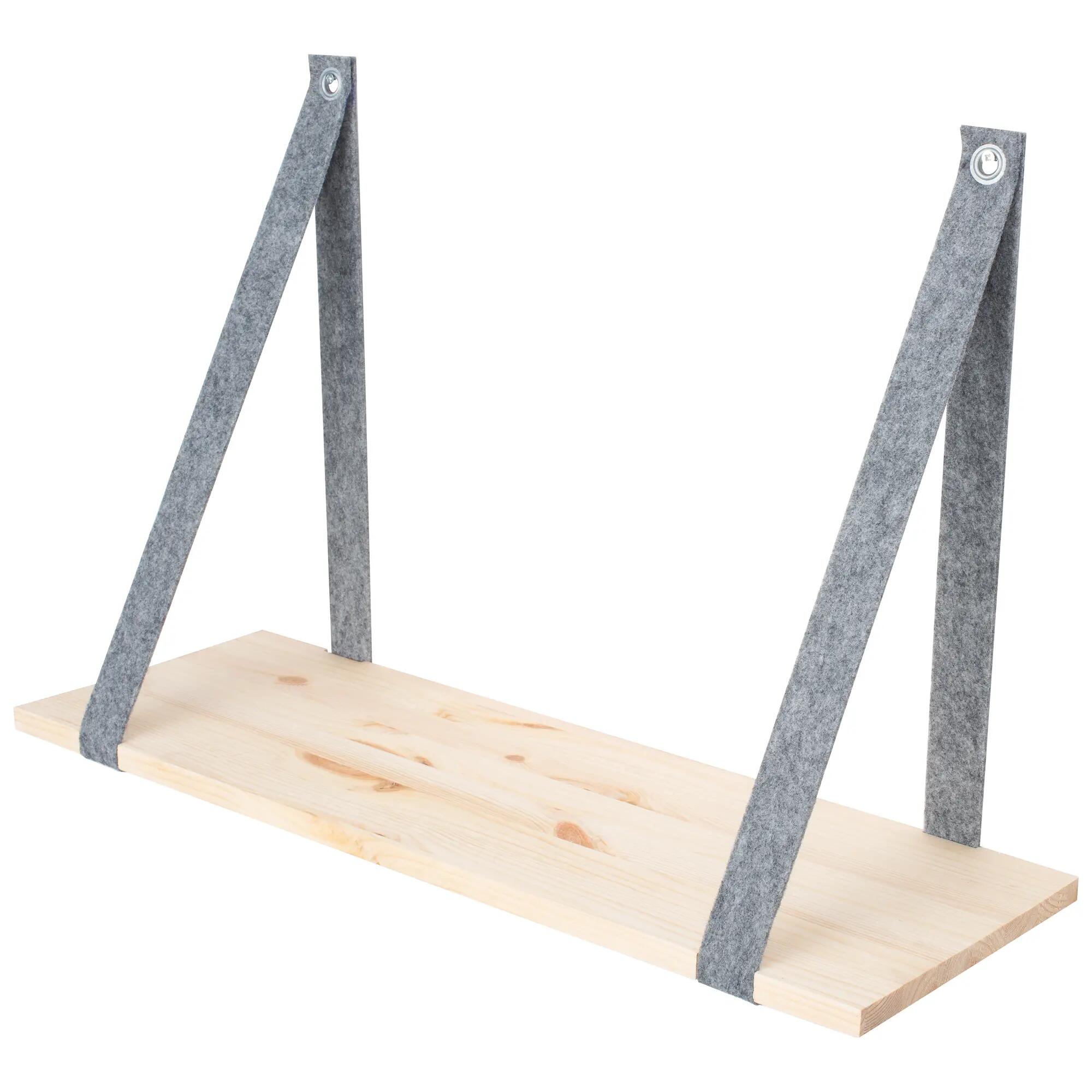 Etagère murale Lanière Feutrine et étagère pin 3,5cm 60x20x1,5 cm brut, L.60 x