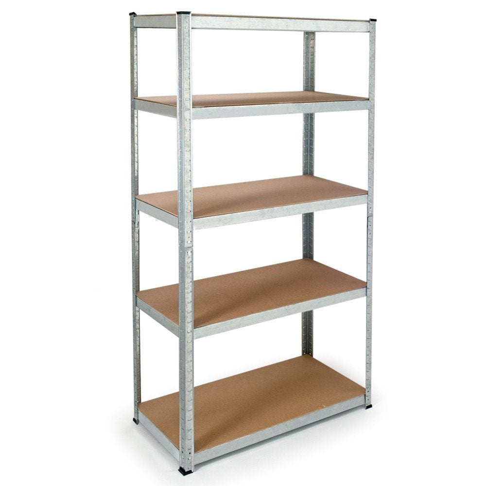 Étagère Rangement modulable - 90 x 180 cm - 875 kg max - 5 niveaux - 40 cm - Gris