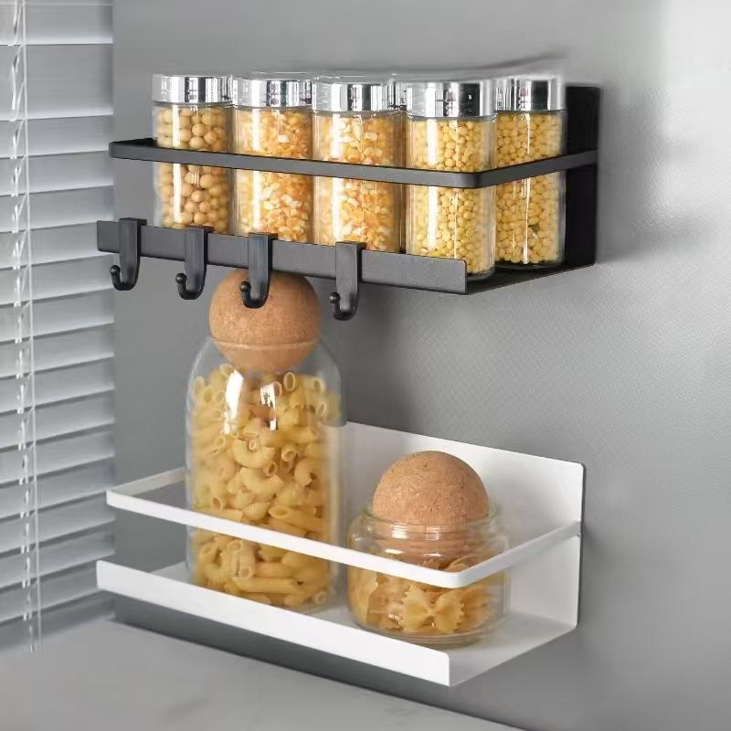 Optimisez votre cuisine en un clin d’œil. Ce lot comprend deux étagères magnétiques en métal pouvant se fixer sur le côté du réfrigérateur ou toute surface métallique. Elles permettent d’organiser épices, condiments et petits ustensiles avec style et efficacité.