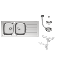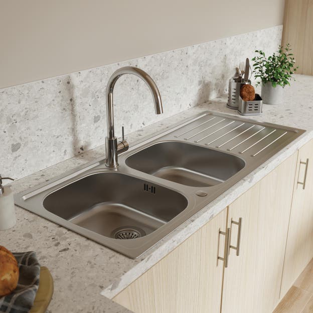 Evier à encastrer 2 bacs avec égouttoir, ESSENTIEL, Inox anti-rayures