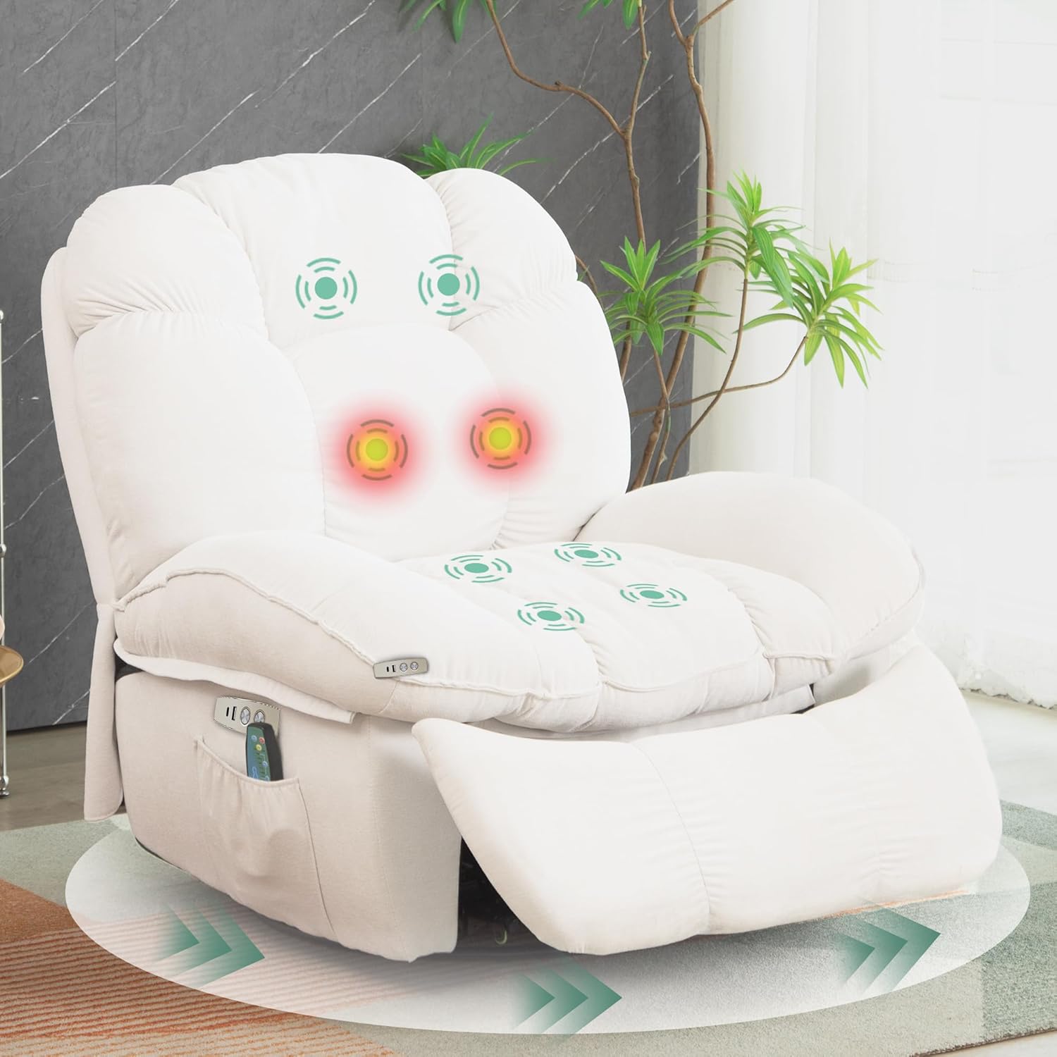 Fauteuil à bascule pivotant électrique avec fonctions de massage et de chauffage, fauteuil inclinable électrique pour adultes, blanc.