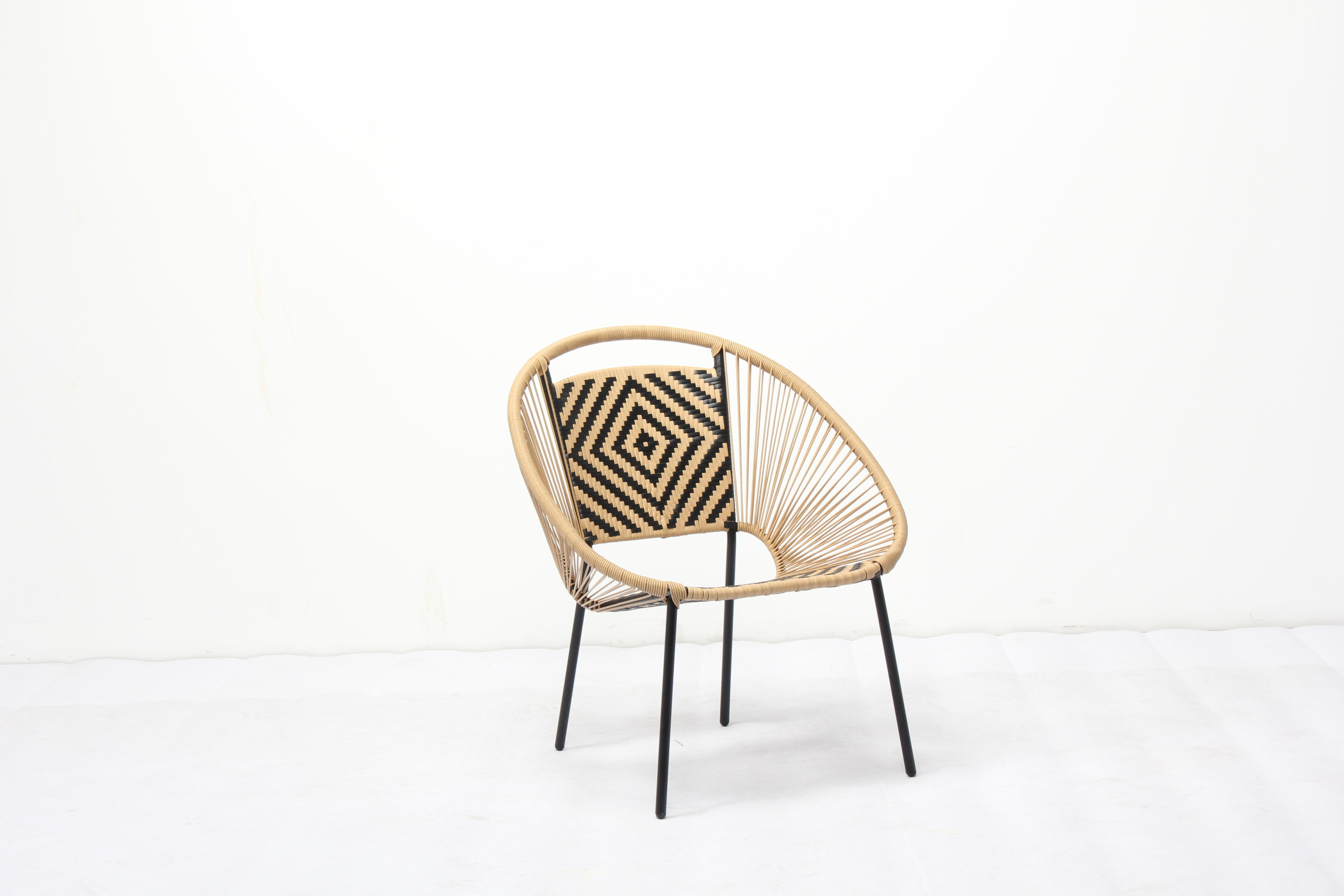 Apportez une touche moderne et chaleureuse à votre terrasse avec ce fauteuil de jardin bohème. Confortable et design, il est conçu en métal avec un revêtement en fils plastiques imitation rotin tressé coloris beige et noir, sublimé par un motif sur le dossier. Sa structure en acier noir assure une bonne stabilité et ne requiert pas d'entretien particulier. Son dossier ergonomique offre un excellent soutien pour votre dos durant vos moments de détente. Dimensions : L69,5 x P69,5 x H81 cm. Fauteuil garanti 2 ans.