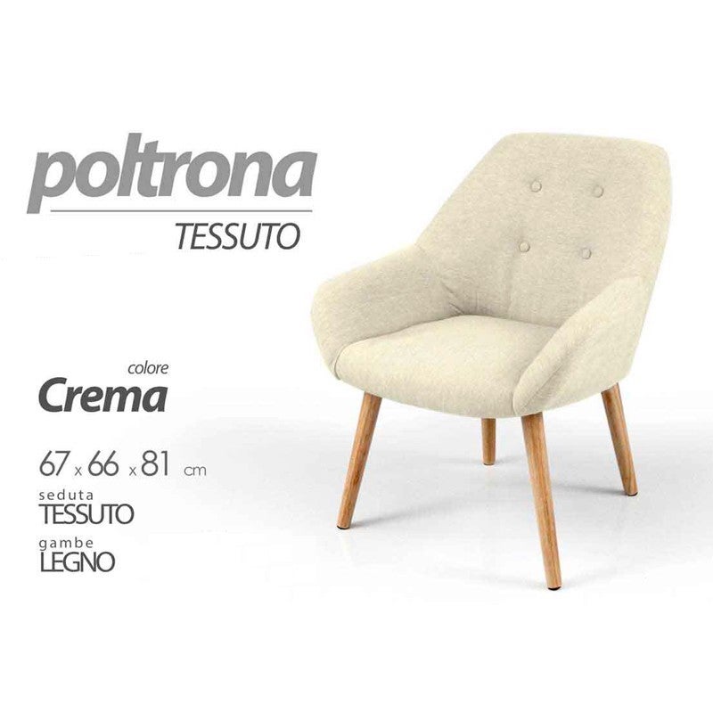 Fauteuil chic en tissu pour chambre salon pieds en bois cm 67 x 66 x 81 h crème
