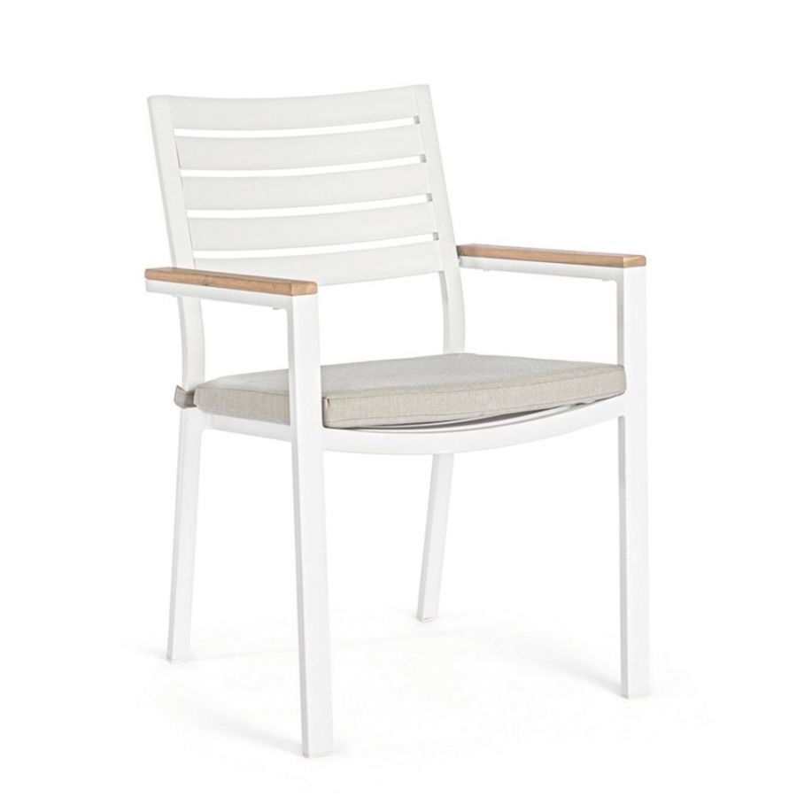 Fauteuil de jardin Blanc esthétique et épuré, le fauteuil Belmar sera votre allié de choix pour des repas joyeux en plein air.