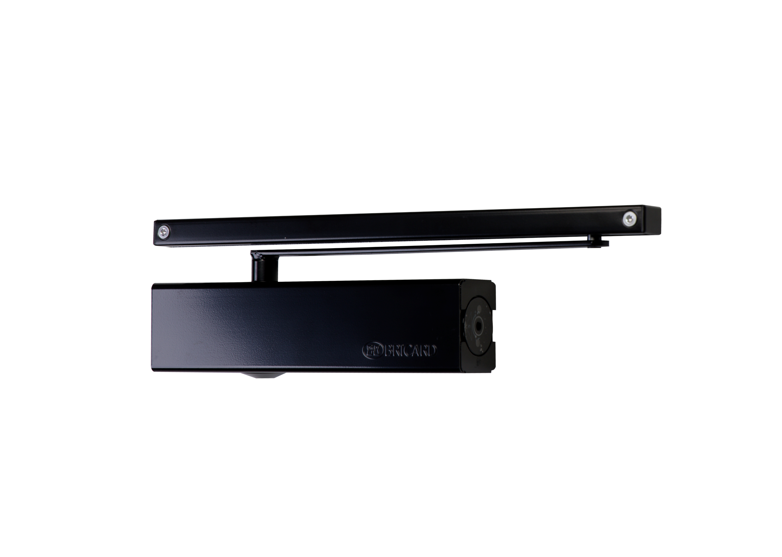 Bricard Ferme-porte hydraulique Noir. Force 1 à 3 (60kg), bras à glissière (anti-vandalisme), Conforme au marquage CE 0432. Pose rapide et aisée. 100% réversible pour toute configuration de pose. Apte à équiper un bloc porte coupe feu 2 heures, conforme à la norme EN 1154 et PMR.