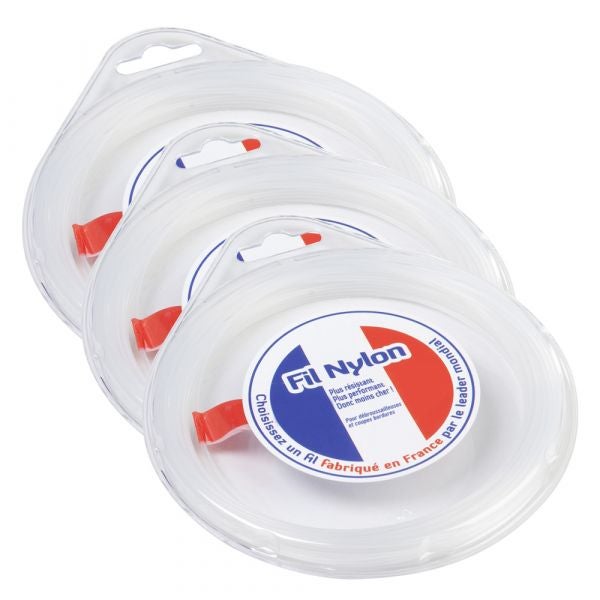 3 blisters de fils Nylon® pour débroussailleuse, coupe bordure et rotofil.