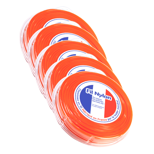 5 blisters de fils Nylon® pour débroussailleuse, coupe bordure et rotofil.