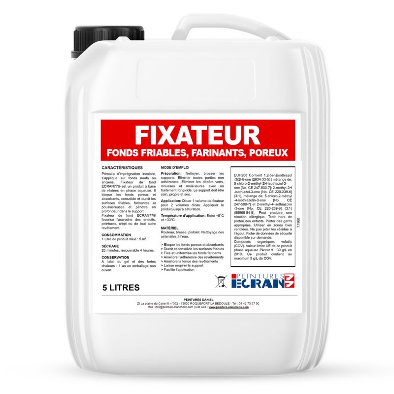 Fixateur de surface, fixe et durcit les fonds friables, farinants, bloque les fonds poreux, régule l'absorption ECRAN77 5 litres-Incolore