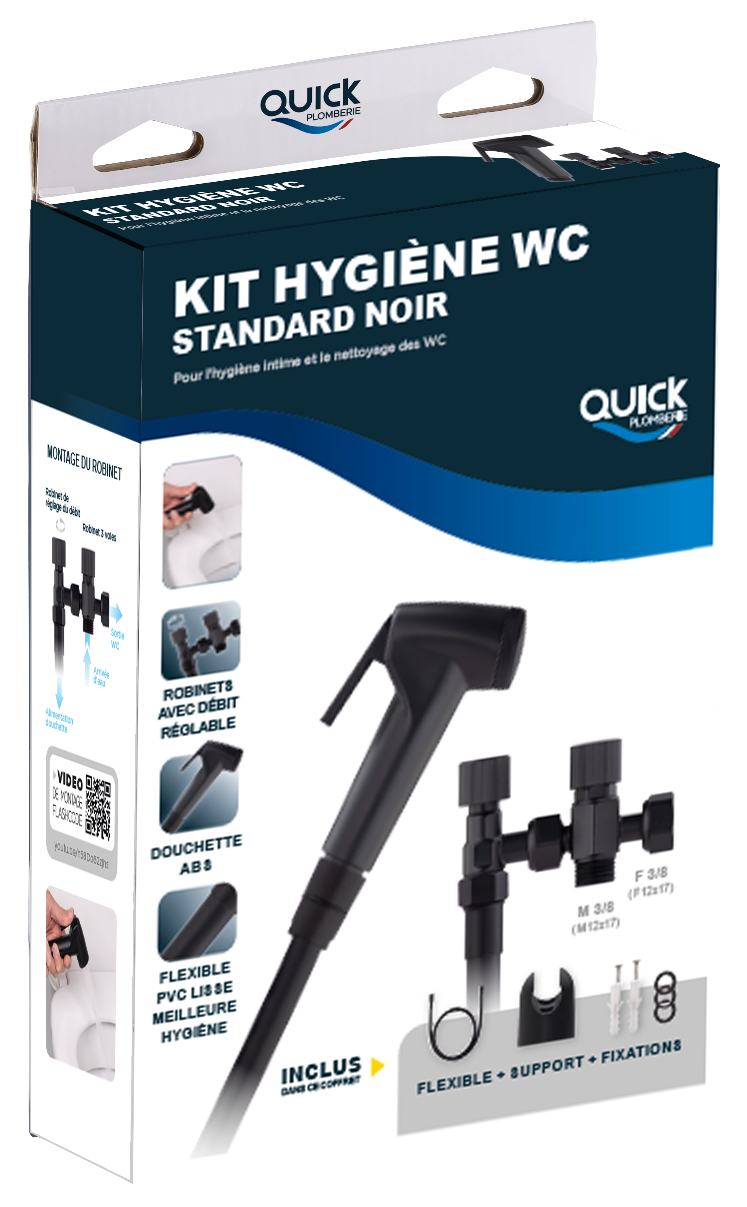 Flexible noir spécial pour raccordement sanitaire d'une douchette et d'un robinet wc - design esthétique et moderne