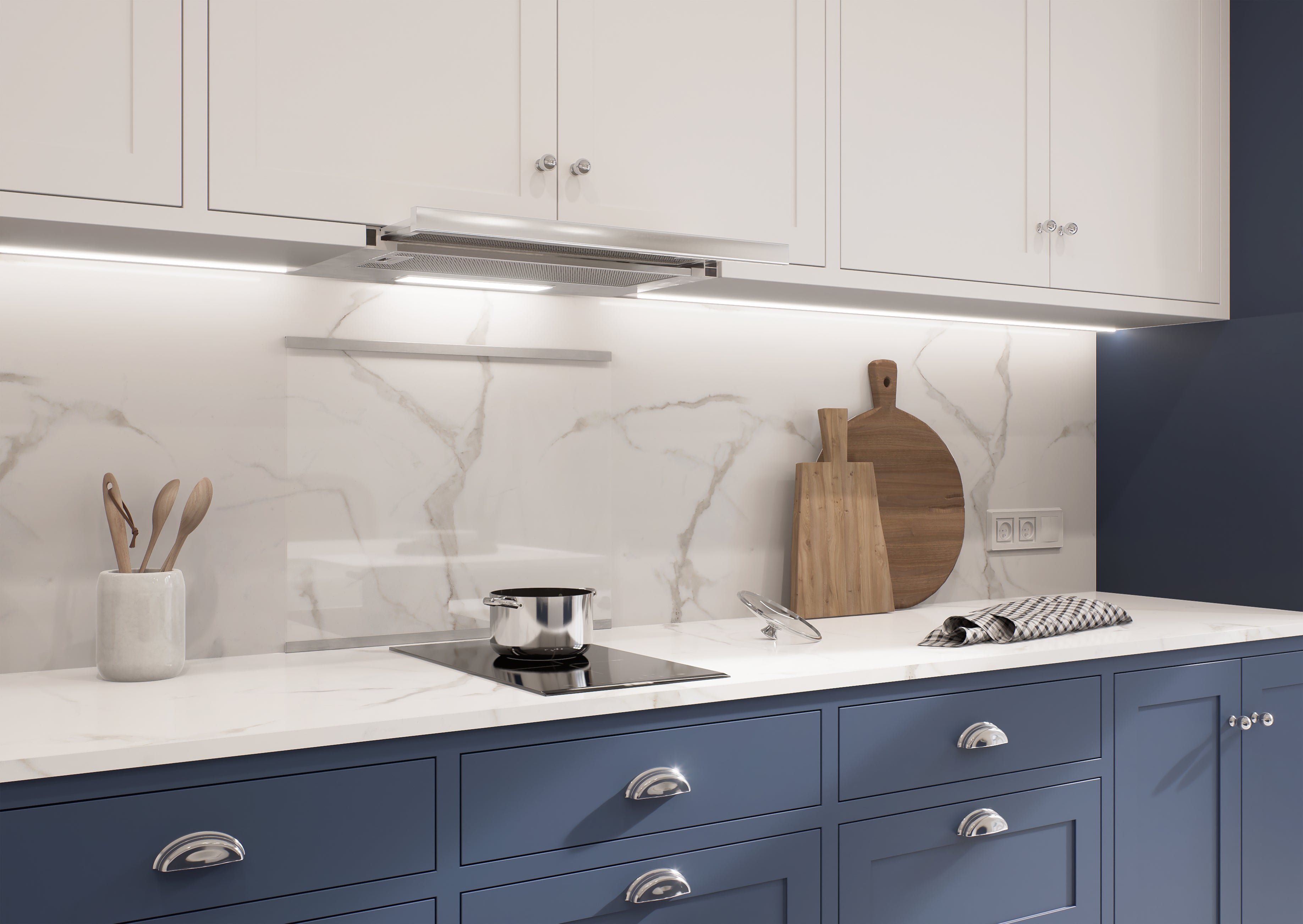Fond de hotte verre transparent 50x60cm. Panneaux muraux de haute qualité en verre de sécurité de 5 mm d’épaisseur Utilisation : espaces de cuisine entre les meubles. Les panneaux en verre sont faciles à entretenir et apportent un style moderne et original aux cuisines. Ces panneaux muraux en verre contemporain offrent de nombreuses possibilités d’aménagement intérieur. Installés dans la cuisine comme crédence, ils protègent parfaitement le mur contre les salissures au-dessus du plan de travail. Ils ajoutent du caractère à l’intérieur, agrandissent visuellement l’espace et contribuent à un éclairage optimal. Ils conviennent donc parfaitement aussi aux appartements de petite surface.