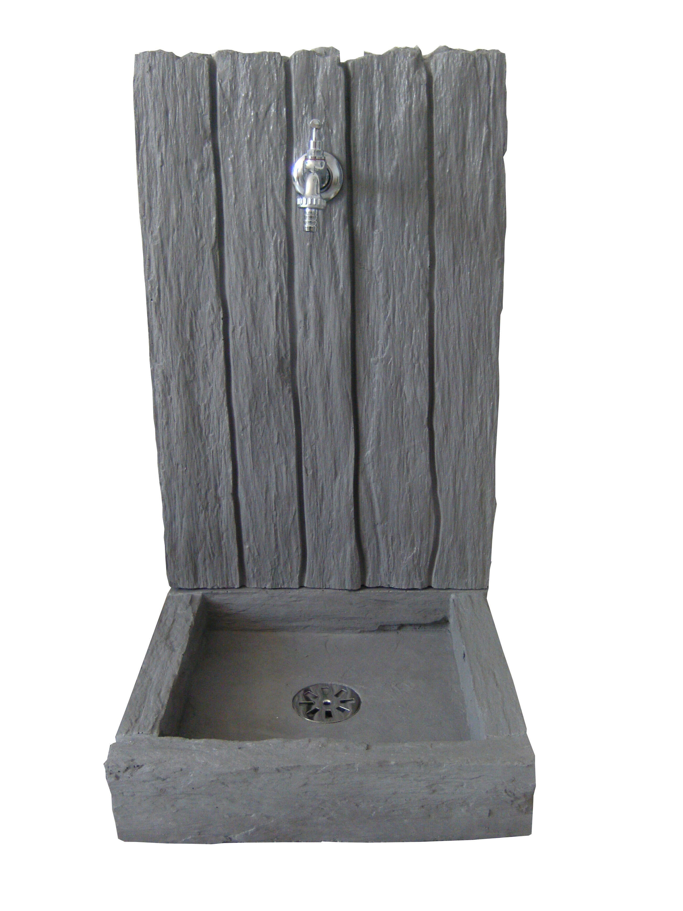 Aspect imitation ardoise. Point d'eau décoratif en aménagement rustique ou contemporain.