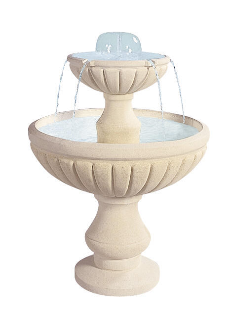 FONTAINE CENTRALE 990 2 COUPES TON BLANC EN PIERRE RECONSTITUEE - POMPE ET ACCESSOIRES FOURNIS - DIAMETRE 76CM - HAUTEUR 98CM - POIDS 94KG - CONTENANCE 65 LITRES - NON GELIF - FABRIQUE EN FRANCE (17)