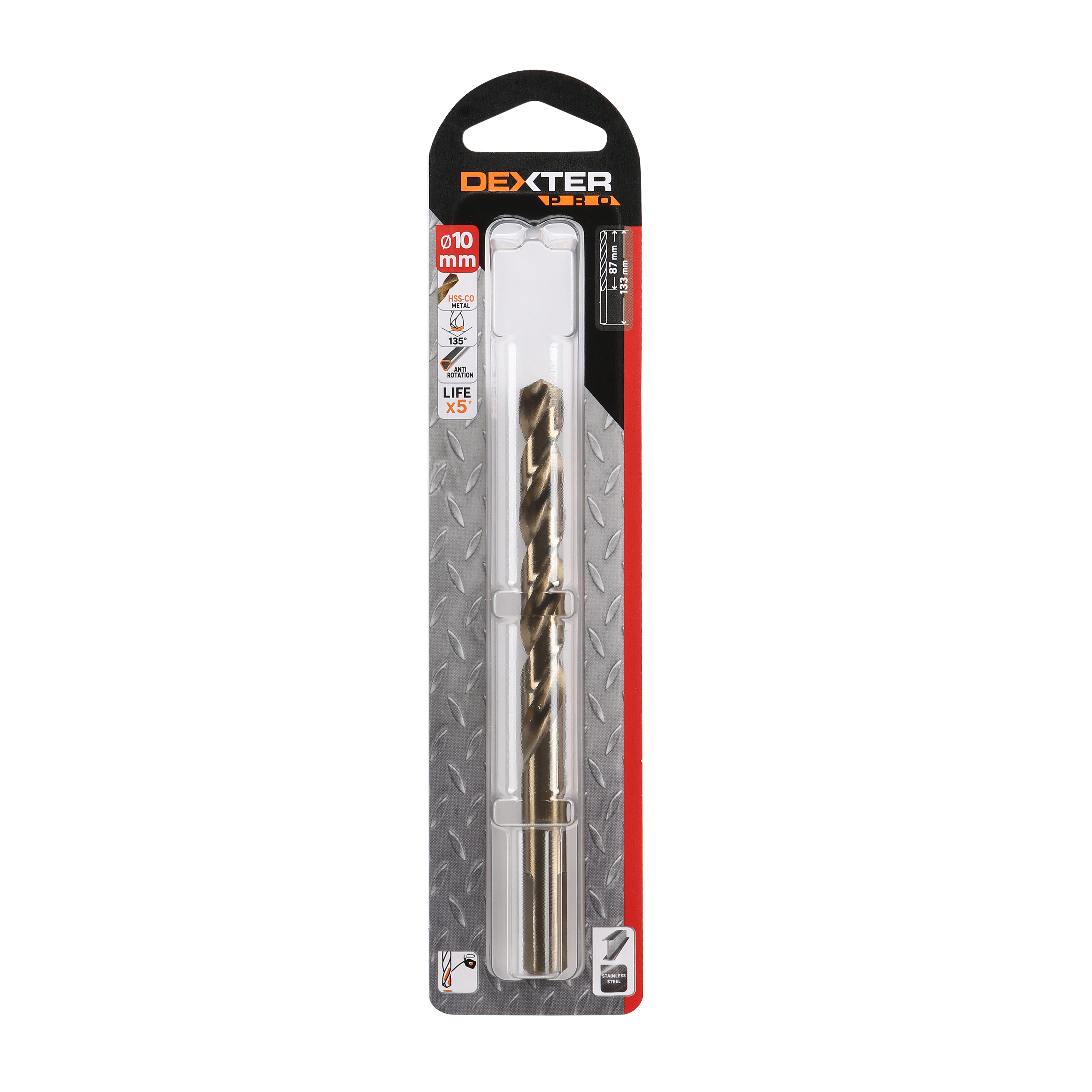 Ce foret est idéal pour un perçage efficace des métaux durs et aciers techniques de type inox. Grâce à son revêtement en acier HSS chargé en cobalt cette gamme de forets DEXTER PRO a une durée de vie accrue par 5 sur les matériaux durs par rapport à la gamme DEXTER métal. Sa tête possède un angle de 135° qui lui permet de percer plus efficacement les matériaux durs. De plus, l'emmanchement triangulaire permet d'éviter la rotation du foret dans le mandrin et garantit un meilleur confort d'utilisation. Pour un perçage optimal, nous vous conseillons de bien adapter la vitesse de rotation de votre machine. En effet, pour les forets métaux, plus le diamètre est important, plus la vitesse de perçage doit être réduite. Vous pouvez vous référer à la valeur indiquée au dos de l'emballage du produit. Pour éviter d'user prématurément votre foret métal, nous vous recommandons de faire des pré-perçages, c'est-à-dire de percer un premier trou d'un petit diamètre avant d'utiliser le diamètre final souhaité. Plus le diamètre de percage est important, plus le nombre de pré-trous à faire sera important (ex: 3 / 6 / 9 / 12) Pour préserver votre foret et augmenter sa durée de vie, Il est indispensable de lubrifier régulièrement votre foret métal à l'huile de coupe pendant le perçage. Evitez d'utiliser la fonction percussion de votre machine/ perceuse pour ne pas endommager le foret comme le matériau à percer. Retrouvez tous nos conseils de perçage du métal dans notre vidéo ou avec le QR code présent sur la fiche produit.