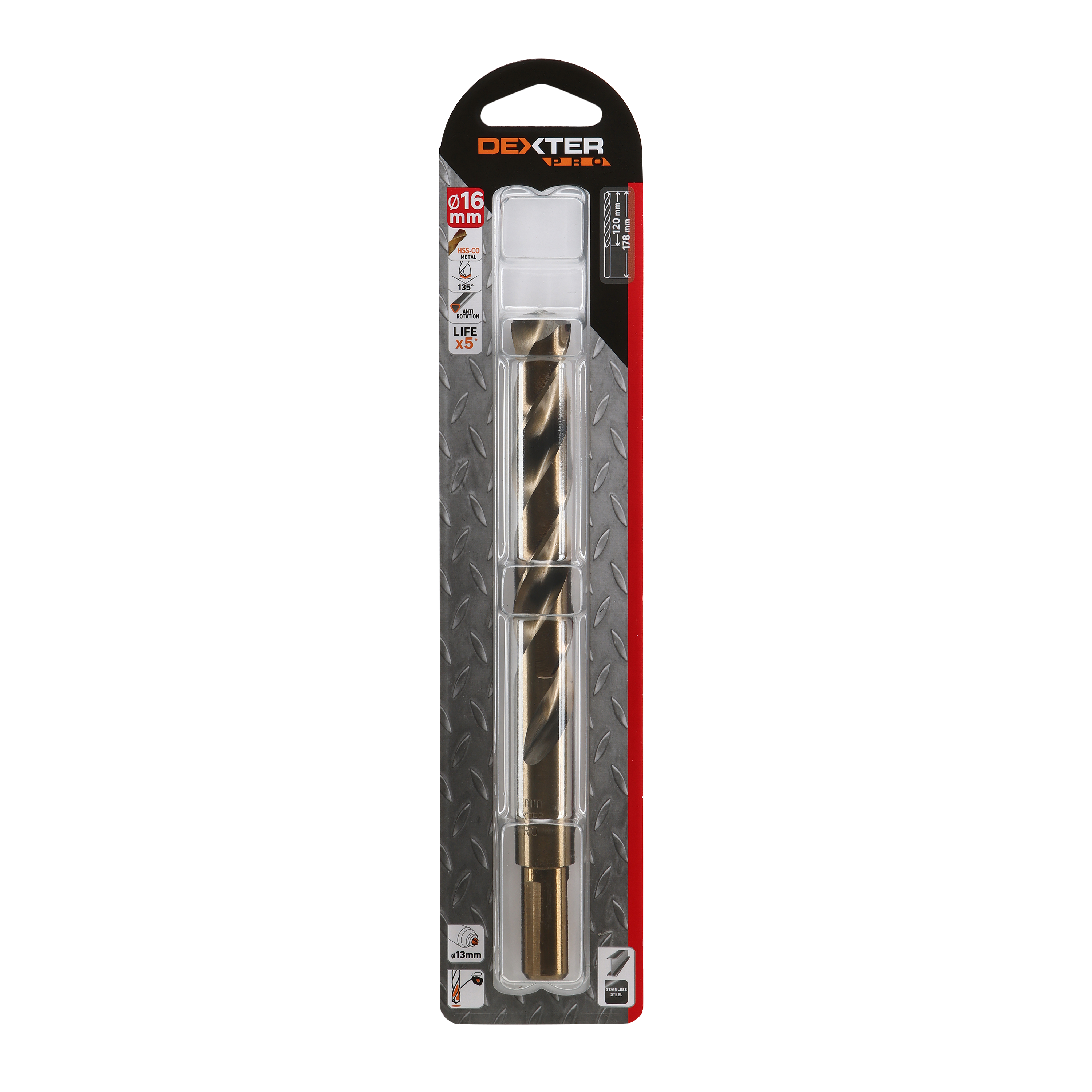 Ce foret est idéal pour un perçage efficace des métaux durs et aciers techniques de type inox. Grâce à son revêtement en acier HSS chargé en cobalt cette gamme de forets DEXTER PRO a une durée de vie accrue par 5 sur les matériaux durs par rapport à la gamme DEXTER métal. Sa tête possède un angle de 135° qui lui permet de percer plus efficacement les matériaux durs. De plus, l'emmanchement triangulaire permet d'éviter la rotation du foret dans le mandrin et garantit un meilleur confort d'utilisation. Veuillez bien noter que l'emmanchement est prévu pour un mandrin de 13mm et ne convient pas aux perceuses au mandrin de 10mm. Pour un perçage optimal, nous vous conseillons de bien adapter la vitesse de rotation de votre machine. En effet, pour les forets métaux, plus le diamètre est important, plus la vitesse de perçage doit être réduite. Vous pouvez vous référer à la valeur indiquée au dos de l'emballage du produit. Veuillez noter qu'à partir du diamètre 12mm, nous recommandons de percer avec une perceuse à colonne. Pour éviter d'user prématurément votre foret métal, nous vous recommandons de faire des pré-perçages, c'est-à-dire de percer un premier trou d'un petit diamètre avant d'utiliser le diamètre final souhaité. Plus le diamètre de percage est important, plus le nombre de pré-trous à faire sera important (ex: 3 / 6 / 9 / 12). Pour préserver votre foret et augmenter sa durée de vie, Il est indispensable de lubrifier régulièrement votre foret métal à l'huile de coupe pendant le perçage. Evitez d'utiliser la fonction percussion de votre machine/ perceuse pour ne pas endommager le foret comme le matériau à percer. Retrouvez tous nos conseils de perçage du métal dans notre vidéo ou avec le QR code présent sur la fiche produit.
