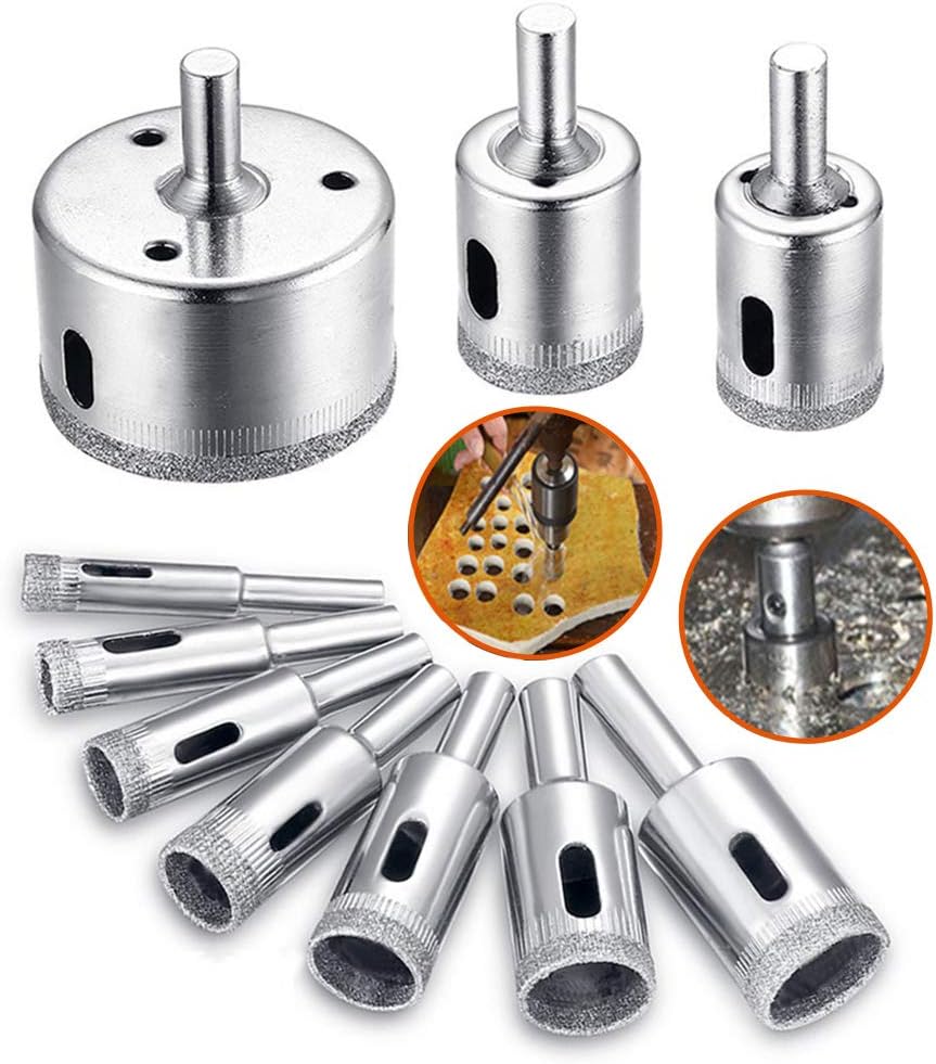 Foret diamanté, Scie-cloche Lot d'accessoires de forets pour verre/carrelage/marbre/porcelaine de coupe,acier inoxydable Carbone 8-50 mm 10 pièces