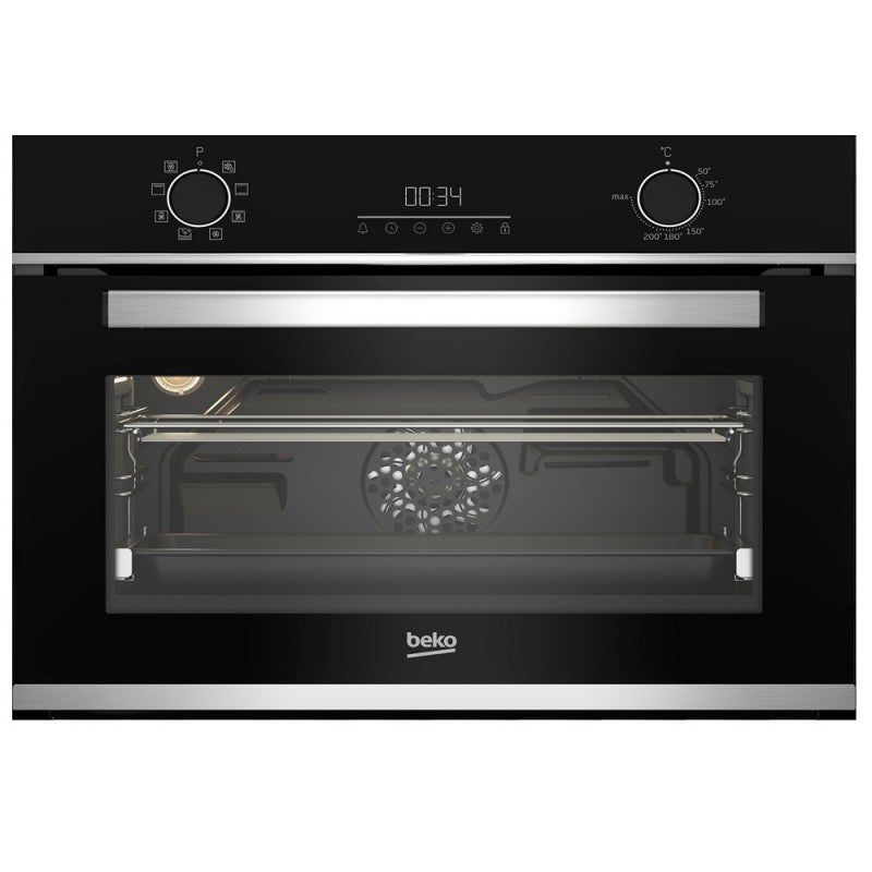 Four encastrable Beko BBCM13300XC COMPACT 48L Caracteristiques principales : Classe énergétique : A. Type de pose : Encastrable. Type de chaleur four : Multifonction, Chaleur tournante brassée, Convection Naturelle. Nombre de programmes : 8. Energie utilisée : Electrique. Sécurité : Verrouillage des commandes. Caractéristiques complémentaires : ventilateur de refroidissement, verrouillage de l'écran.dimensions h x l x p (cm) : 45.5 x 59.4 x 56.7.couleur : inox.poids (kg) : 29.. Type d'ouverture four : Abattante. Accessoires fournis : 1 grille, 1 lèchefrite. Couleur : noir. Puissance : 2400 W. Volume total : 48 l. Poids : 29 kg. Hauteur d'encastrement : 46 cm. Largeur d'encastrement : 56 cm. Profondeur d'encastrement : 54,7 cm. Type de cordon d'alimentation : Fourni sans prise. Connecté : Non. Mode de cuisson : Gril, Gril ventilé, Décongélation. Disponibilité des pièces détachées : 12 ans. Points forts : Encastrable - Multifonction - Chaleur pulsée 3D - Classe A. Capacité 48 L - 8 modes de cuisson. Nettoyage catalyse - Porte 3 verres. Afficheur LED blanc - Rail télescopique. Caracteristiques principales :