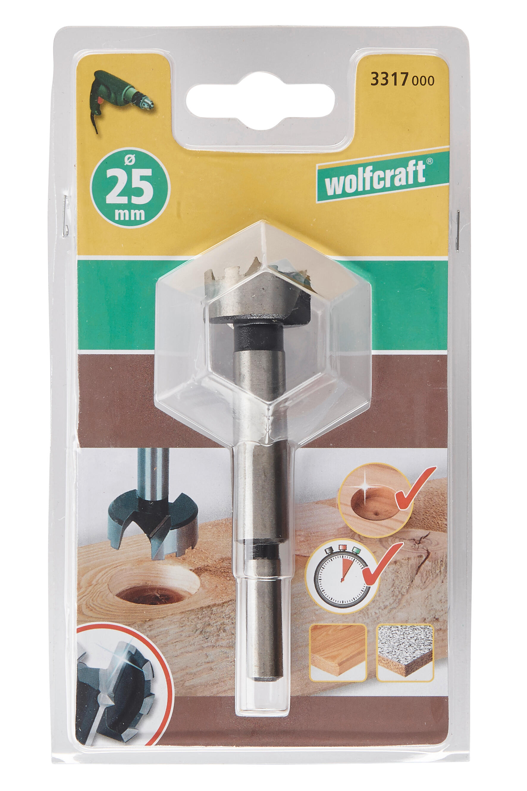 Cette fraise à bois d’encastrement en acier chrome vanadium est idéale dans un projet de pose de charnières et les perçages borgnes dans le bois tendre. La pointe de centrage autotaraudante permet de réaliser un pré-perçage de précision, avec une manipulation stable. Les deux tranchants principaux aiguisés permettent un perçage rapide. La géométrie spéciale des tranchants facilite les travaux, avec un faible dégagement de chaleur. Le foret est disponible en différentes dimensions et dispose d’un emmanchement rond Ø 8 mm pour un serrage rapide dans le mandrin.