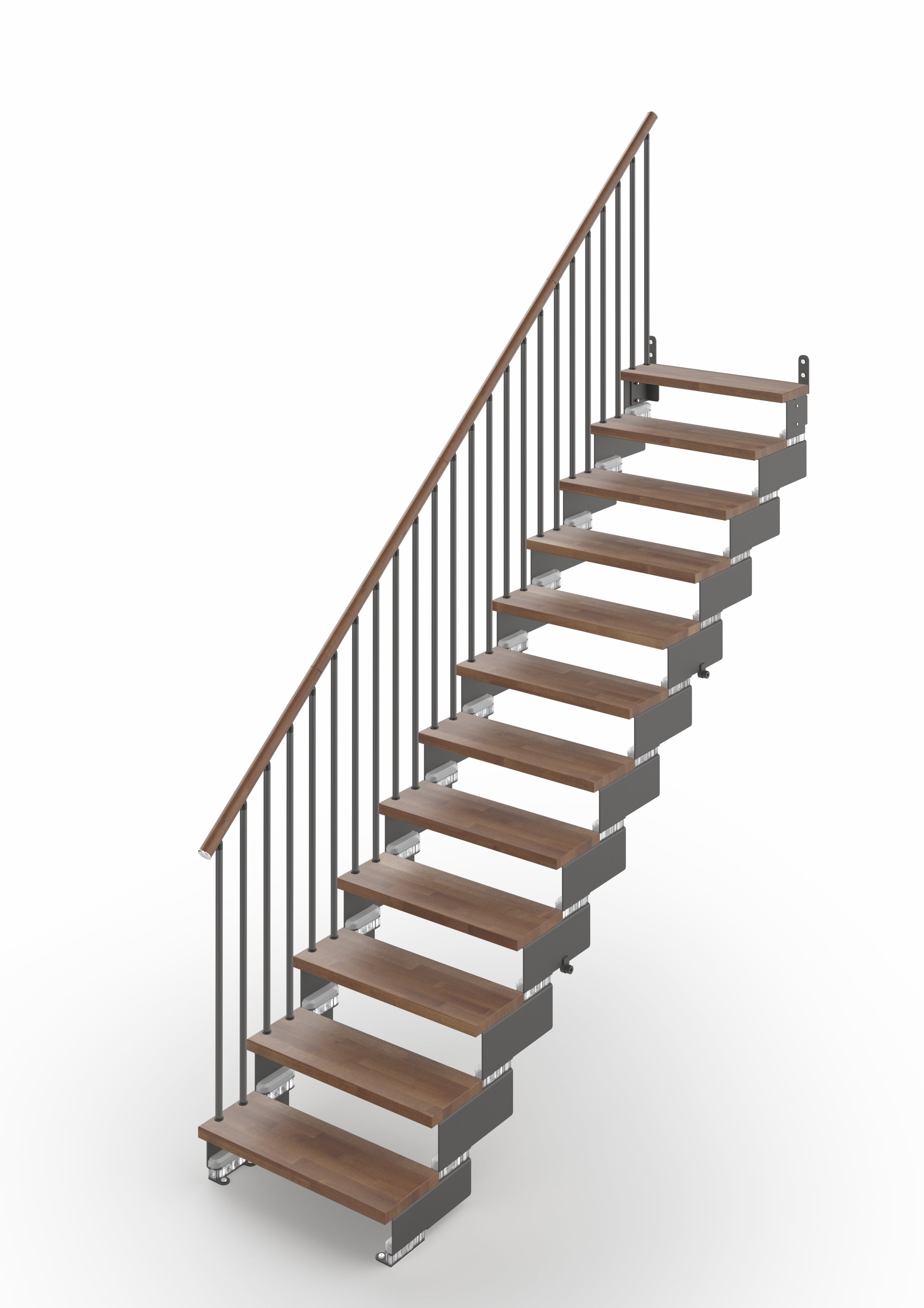 Gala - Escalier Droit (Escalier Rectiligne) - Largeur 74 cm - 12 Marches - 13 Contremarche - Rampe avec colonnes vertical (Modèle Tube) (un côté) - Main Courante Bois - Soutien au sol (10-130 cm) - Couleur Bois: Noyer 25 - Couleur Métal: Gris Anthracite