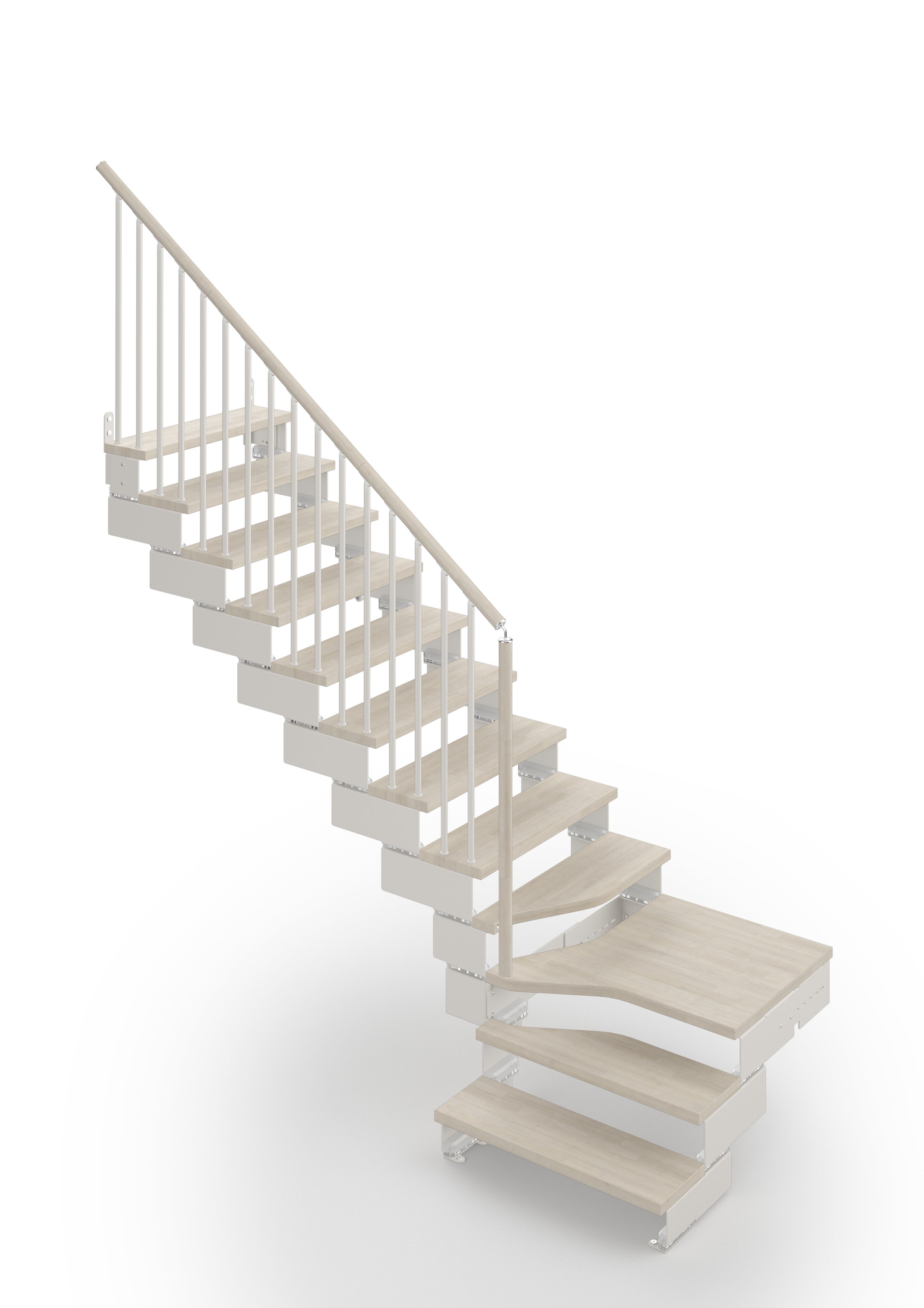 Gala - Escalier quart tournant (L Forme - 1/4 tournant) - Largeur 74 cm - 12 Marches - 13 Contremarche - Rampe avec colonnes vertical (Modèle Tube) (côté interne) - Main Courante Bois - Soutien au sol (10-130 cm) - Couleur Bois: Blanc 84 - Couleur Métal: Blanc