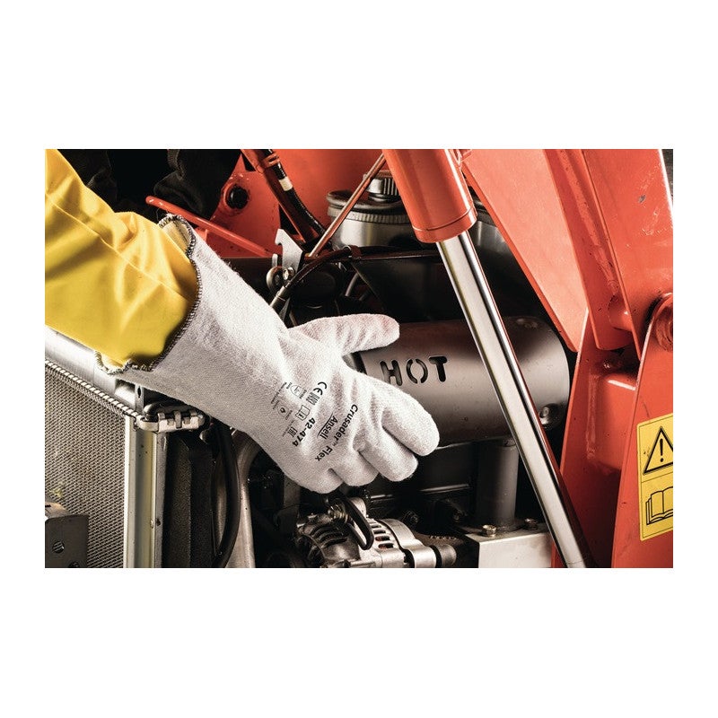 selon EN 388 · EN 407 · cat. III · matériau : polyester/non-tissés de polyester/coton · avec revêtement nitrile · convient pour une manipulation brève d'objets chauds jusqu'à 180 °C · résistance à la chaleur de contact niveau 2 · protection efficace contre les coupures, éraflures et autres blessures légères · meilleure sécurité de prise , optimal pour les surfaces sèches et humides · confort et flexibilité · doublure interne de non-tissé absorbant la transpiration · Application : manipulation de gaz chauds, manipulation de pièces de fonderie brûlantes et de morceaux de bois, prélèvement de pneus en caoutchouc, paumelles et profilés de machines de vulcanisation, prélèvement de produits stérilisés d'autoclaves Autres caractéristiques techniques: · Résistance à l'abrasion: 2 · Résistance à la propagation des déchirures: 4 · Résistance à la perforation: 1 · Résistance à la coupure (test de coupe): 2 · Version: absorbe la transpiration · Norme: EN 388, EN 407. Taille: 10, Protection thermique maxi. pour un court instant: chaleur au contact 180 °C, Longueur env.: 330 mm, Couleur: gris, Résistance à la coupe EN-ISO (en Newton): B, Marque: ANSELL, Matériau: polyester/polyester non-tissé/coton avec nitrile, Résistance à la chaleur de contact: Level 2, Catégorie EPI: III. Taille: 10, Protection thermique maxi. pour un court instant: chaleur au contact 180 °C, Longueur env.: 330 mm, Couleur: gris, Résistance à la coupe EN-ISO (en Newton): B, Marque: ANSELL, Matériau: polyester/polyester non-tissé/coton avec nitrile, Résistance à la chaleur de contact: Level 2, Catégorie EPI: III. Taille: 10, Protection thermique maxi. pour un court instant: chaleur au contact 180 °C, Longueur env.: 330 mm, Couleur: gris, Résistance à la coupe EN-ISO (en Newton): B, Marque: ANSELL, Matériau: polyester/polyester non-tissé/coton avec nitrile, Résistance à la chaleur de contact: Level 2, Catégorie EPI: III