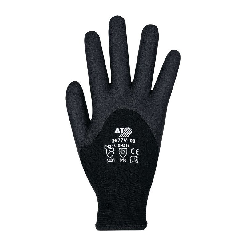 selon LA 388 · EN 511 · Kat. II · Matériel : Polyamide · Doublure : Polyacrylique · HPT® revêtement vinyle · Huile et graisses · très bonne poignée humide et sèche · Application: zones de réfrigération à l'extérieur, services de déblaiement hivernal, entrepôts non chauffés, conducteurs, conducteurs de grues, construction de routes, distribution de produits frigorifiques Autres caractéristiques techniques: · Résistance à l'abrasion : 3 · Résistance à la résistance à la corrosion: 3 · Résistance à la piqûre: 1 · Résistance à la coupe (essai de coupe) : 1 · Finition : Doublure acrylique, Tricot · Norme : EN 388, EN 511. Couleur: noir, Taille: 9, Résistance à la coupe EN-ISO (en Newton): X, Marque: ASATEX, Matériau: bouclé Terry, Catégorie EPI: II. Couleur: noir, Taille: 9, Résistance à la coupe EN-ISO (en Newton): X, Marque: ASATEX, Matériau: bouclé Terry, Catégorie EPI: II