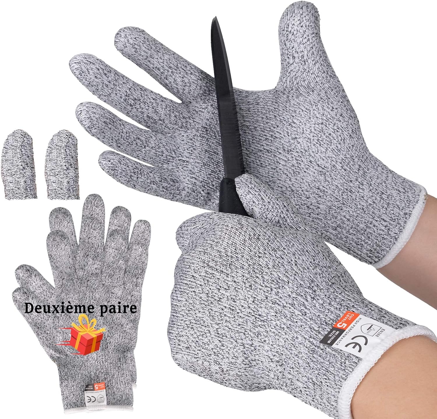 - PROTECTION GARANTIE - La qualité de nos gants anti coupures a été certifié par l’apposition du logo CE et de la norme EN388 qui garantissent la qualité et la résistance de nos gants de travail. Ces gants de protection vous protègeront contre les coupures liées aux objets tranchants en métal, couteaux, mandolines, lames, verre etc...