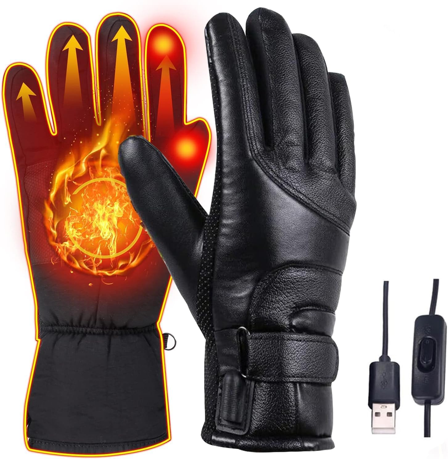 【Gants pour écran tactile】- Un matériau en cuir spécial est cousu sur l'index et le pouce des gants chauffants. Vous pouvez utiliser des appareils électroniques intelligents tels que des téléphones portables et des tablettes sans enlever les gants chauffants. Le brassard est attaché à l'aide d'un cordon de serrage réglable, qui peut être ajusté à volonté.