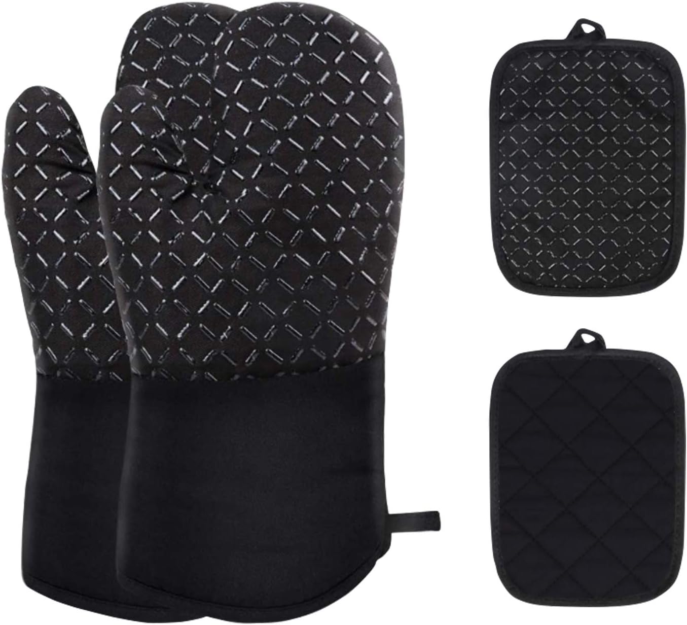 Gants de Four Gants de Four 1 Paire et Manique Silicone Gants de Cuisine Cuisine avec Tapis de Maniques Résistant à Chaleur Antidérapant (Noir)