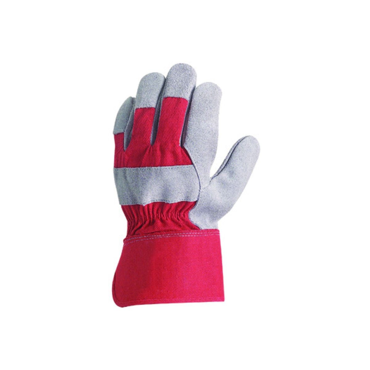 Le Gant docker croûte vachette, toile rouge de Coverguard est constitué de cuir résistant avec paume doublée coton, dos et manchette en toile rouge.