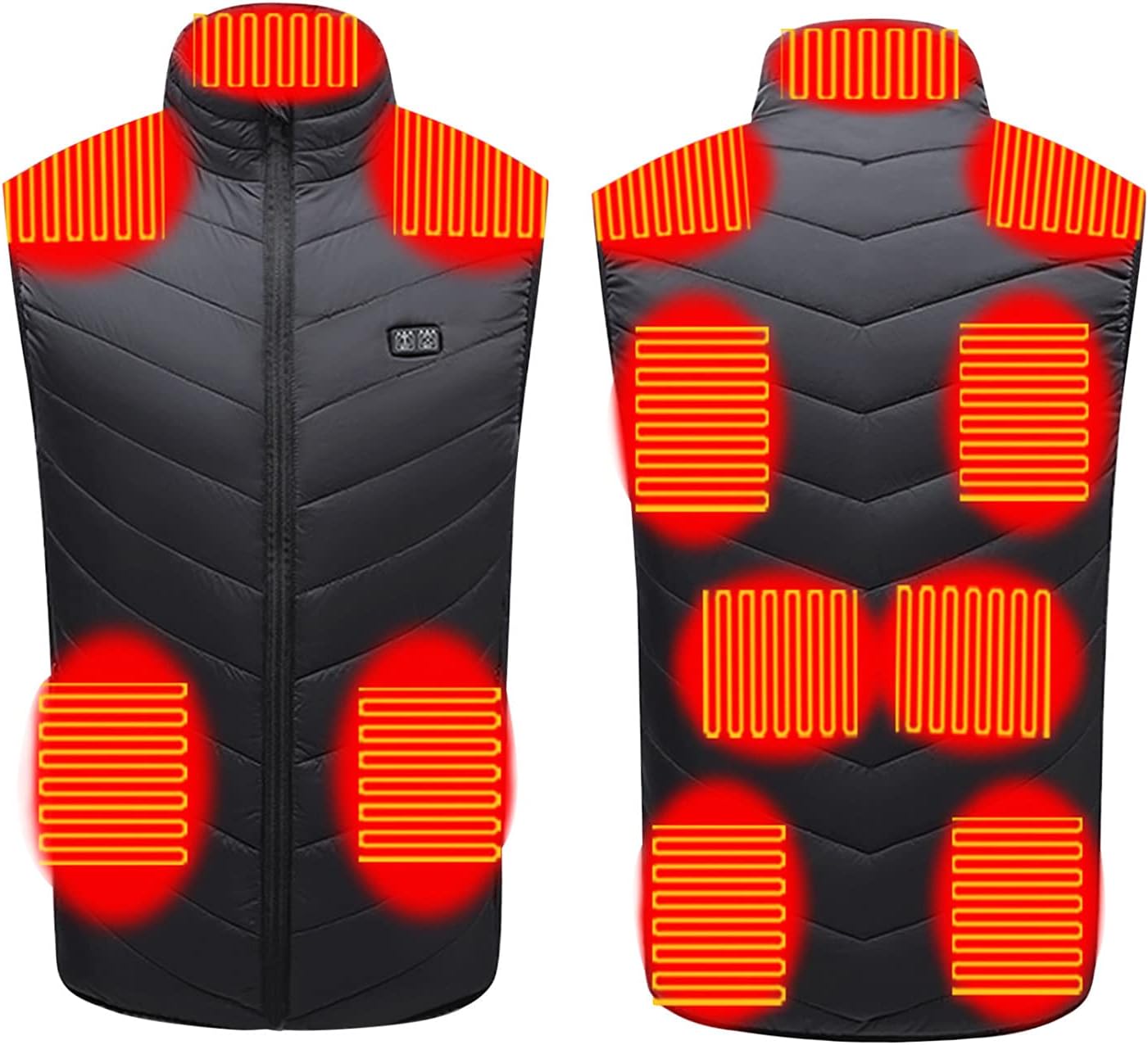 Gilet chauffant pour le corps, chauffage noir à neuf zones à double contrôle, connectivité USB, adapté aux hommes et aux femmes, 4XL noir