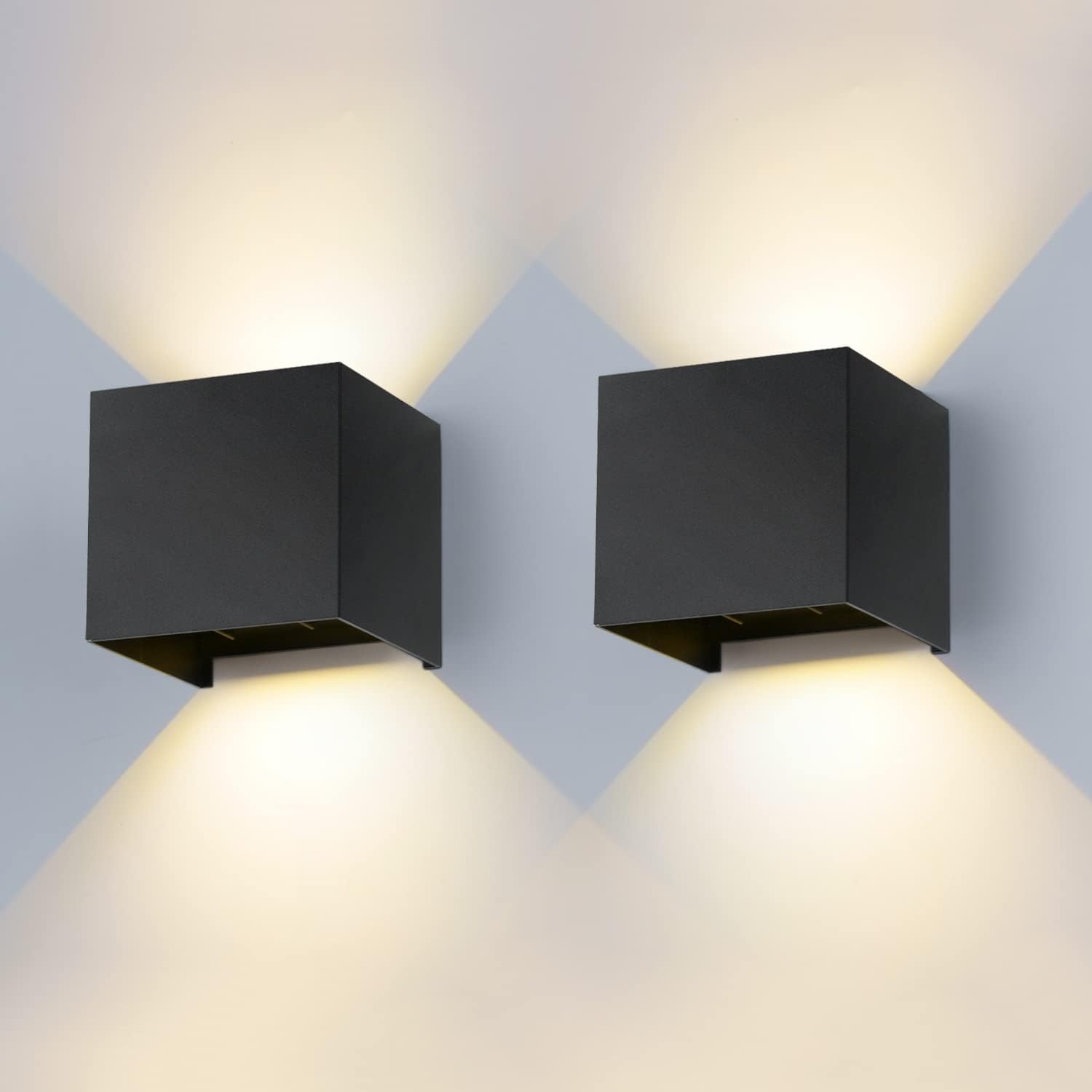 GOECO Lot de 2 appliques murales intérieures/extérieures, 12W, étanches IP65, 3000K, appliques murales carrées pour porche, couloir, salon - Noir