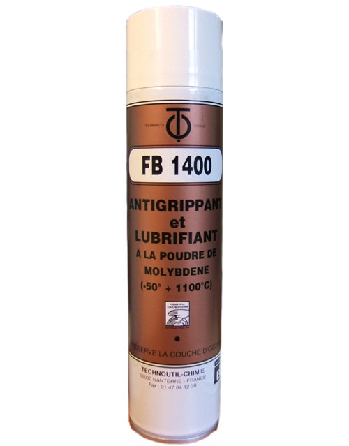 ANTIGRIPPANT LUBRIFIANT TECHNOUTIL FB1400 à la poudre de nickel micronisée additionnée d'aluminium, excellent anti-grippant HAUTE TEMPERATURE - HAUTE PRESSION - Résistant à l'eau salée. -20° à +1200°c - 6000 kg/cm² Lubrification et protection parfaite de toutes pieces soumises à de très hautes temperatures et pressions. Roulements, Paliers, rails, Grilles et Rideaux métalliques, engrenages, écrous, visseries, cosses de batteries...