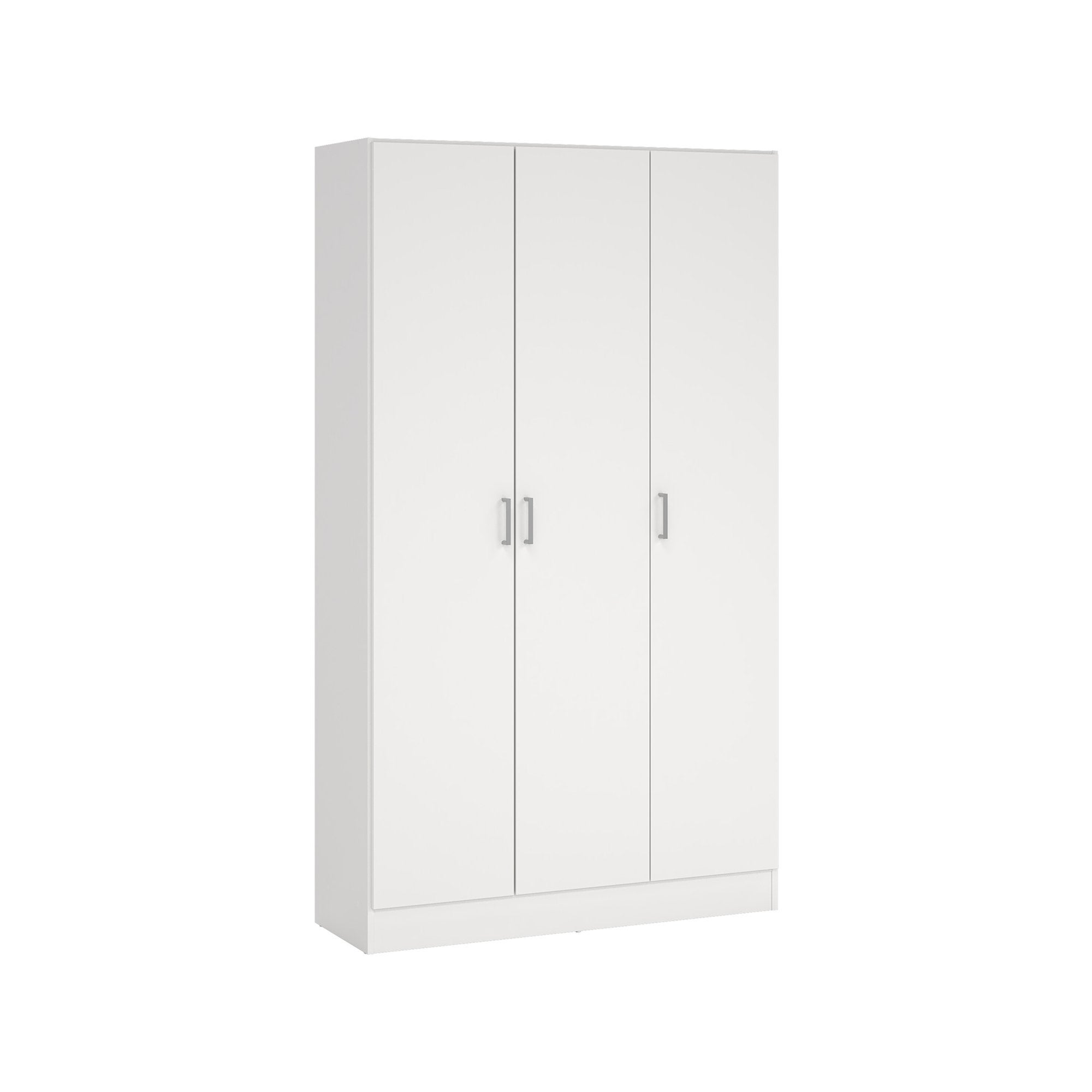 ARMOIRE POLYVALENTE - Armoire auxiliaire avec 3 portes, Armoire à chaussures, Armoire à balais, 109x37h180 cm, Blanc. STRUCTURE ET UTILISATION - Armoire murale avec trois portes battantes et quatre ètagères règlables: à l'intèrieur, la structure modulaire des ètagères permet de tirer le meilleur parti de l'espace - En fonction des besoins de la maison et de ses fonctions, ce meuble de rangement est parfait pour meubler un placard, une buanderie, une salle de bain, un garage, un couloir, une entrèe, un vestiaire ou un bureau contenant des produits d'entretien aux outils de jardinage. CERTIFICATIONS ET INNOVATIONS - Article d'ameublement design certifiè PEFC, parfait pour meubler un environnement moderne et lumineux: le produit idèal pour ceux qui recherchent un produit fonctionnel et peu encombrant pour leur maison ou leur appartement - Garantie de 2 ans à partir de la date d'achat - Livrè dèmontè avec un livret d'instructions de montage. CARACTÉRISTIQUES TECHNIQUES - Produit rèalisè en bois lamellè d'une èpaisseur de 15 mm, un matèriau rèsistant aux chocs et aux rayures, durable et impermèable - Chants avec finition mèlamine - Dos du meuble composè d'un èpais panneau de fibres de moyenne densitè laquè de 3 mm - Classement selon teneur ou rejet de formaldèhyde TYPE E1 - Article d'ameublement èquipè de charnières mètalliques, supports mètalliques pour les ètagères, plots ABS anti-bruit et anti-rayures pour la partie infèrieure du meuble et poignèes ABS gris aluminium - Maximum poids supportè du meuble: 45 Kg - Poids maximum supportè par ètagère: 8 Kg. DIMENSIONS EN CM - Armoire polyvalente: Longueur: 109 Largeur: 37 Hauteur: 180