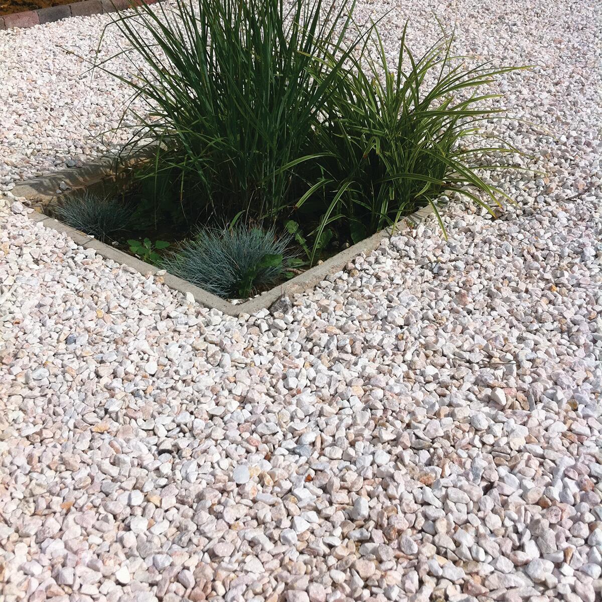 Aménagement d’allées, de cours et de chemins dans le jardin, le rendu final présentera des nuances sera légèrement rosées pour une parfaite association avec la végétation environnante. Il est conseillé de poser un géotextile et/ou un stabilisateur de graviers pour éviter la repousse des mauvaises herbes, éviter les remontées de terre sur les graviers et pour circuler librement à pied ou en voiture.