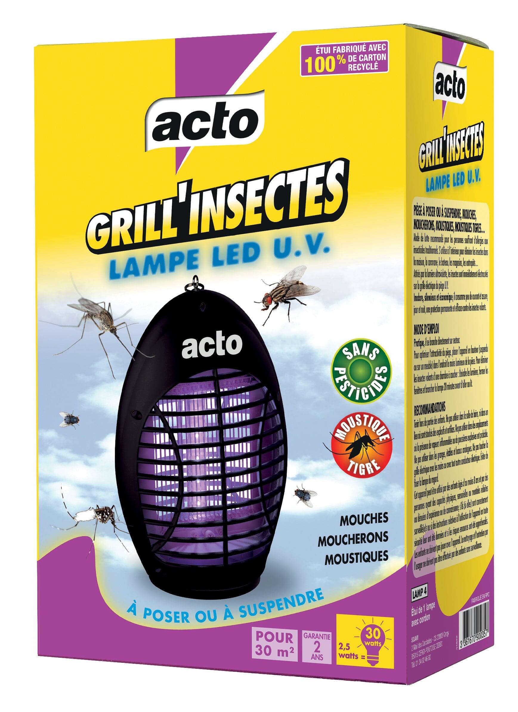 • Contre les mouches, les moustiques et les papillons de nuit. • Lampe-piège 12 LED à ultraviolet, très basse consommation (2,5 W), qui attire les insectes avec sa « lumière noire » et les électrocute sur sa grille métallique haute tension 1 000 volts. • Puissance d’éclairage 180 lumens (l’équivalent d’une ampoule 30 watts à incandescence). Utilisable en intérieur et extérieur, de nuit comme de jour. • Protège 30 m2, posée ou suspendue, de préférence dans l’endroit le moins éclairé de la zone à protéger (lampe fournie avec anneau d’attache et un cordon d’alimentation électrique de 1,2 mètre). • Les plus pratiques : résistance aux chocs, démontage et nettoyage facile… • Silencieux, économique, inodore et sans pesticide, idéal pour les personnes allergiques.