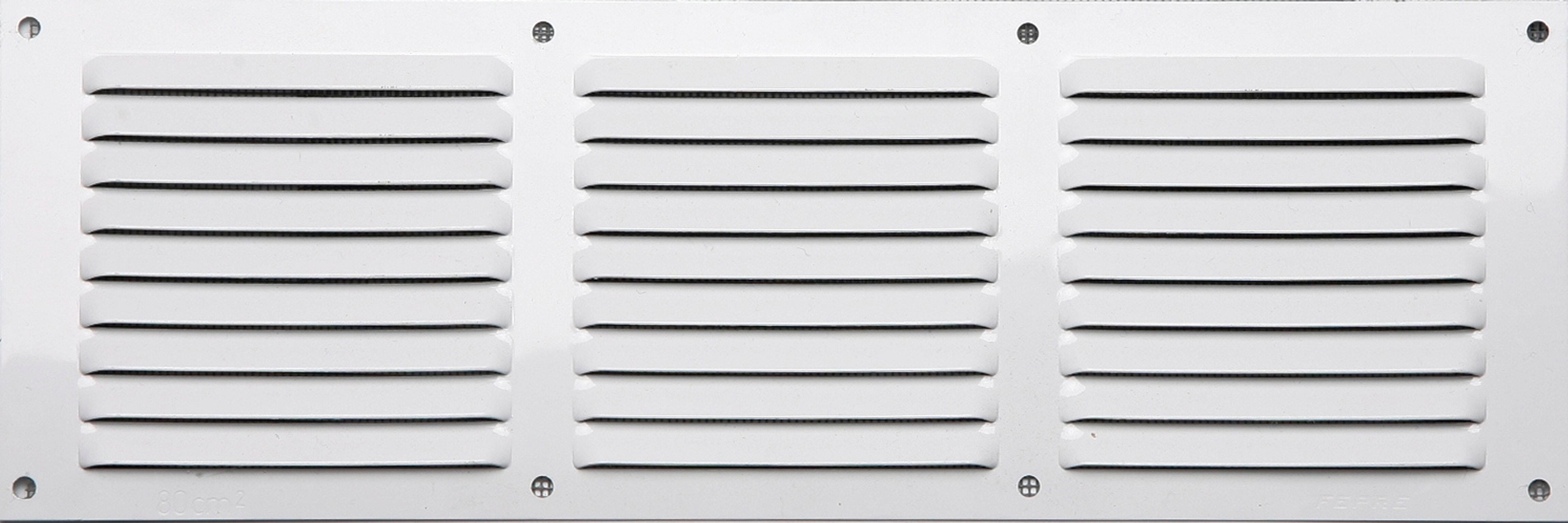 Grille d'aération rectangulaire en aluminium finition vernis blanc. C'est une grille bidirectionnelle qui permet un passage de 66 cm² d'air. Il se pose par vissage. Offre 3 ans de garantie. Dimensions : 30 x 10 cm (largeur x hauteur).