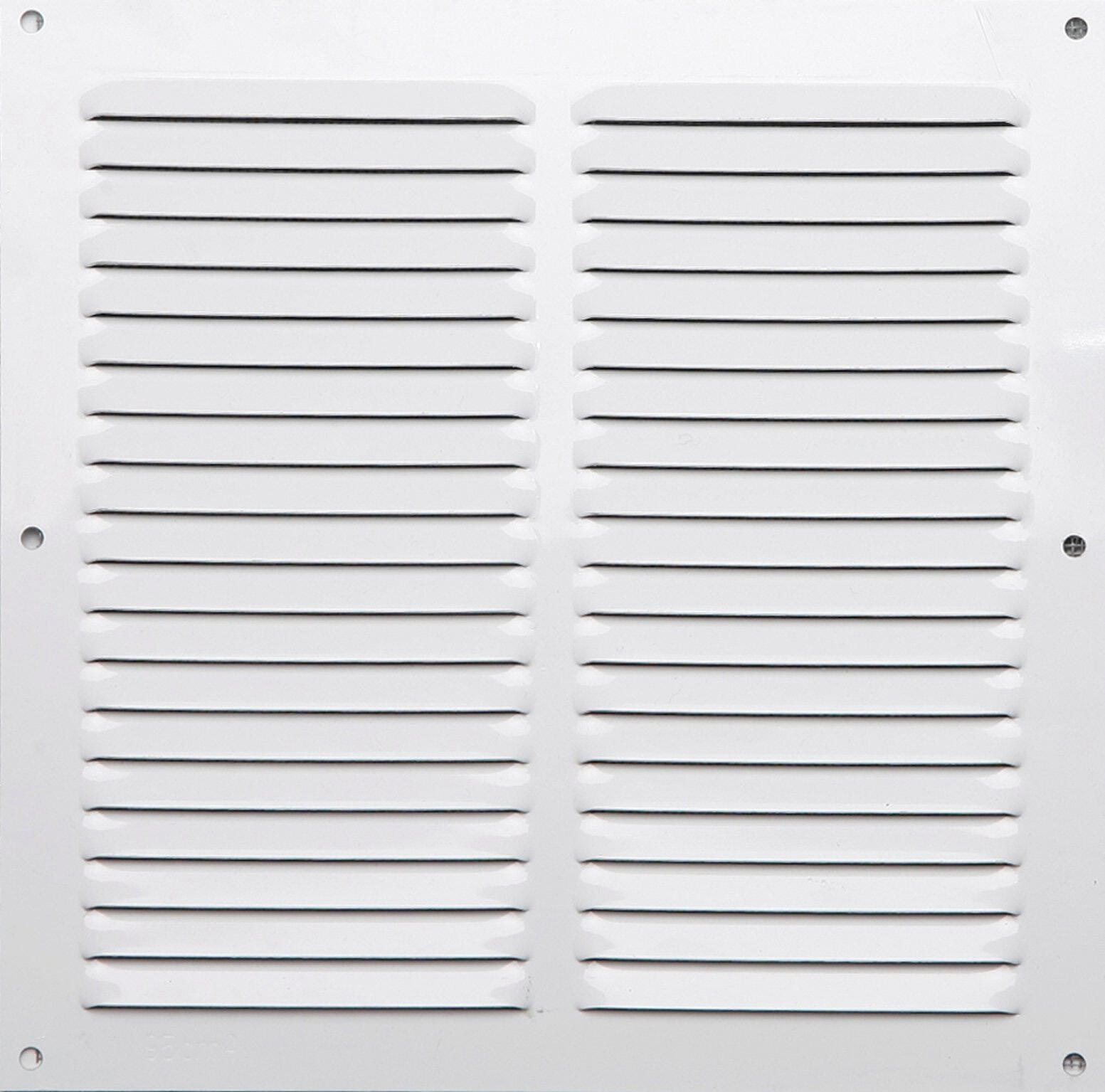Grille sans bord en aluminium laqué blanc de forme carrée, adaptée pour couvrir les fentes de ventilation de la cuisine. Dimensions : 20 x 20 cm.