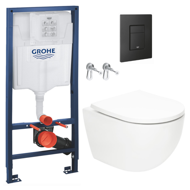Grohe Pack WC Bâti-support Rapid SL + WC SAT Tornado sans bride + Abattant SoftClose + Plaque noire matte (RSLTORNADOKF0)