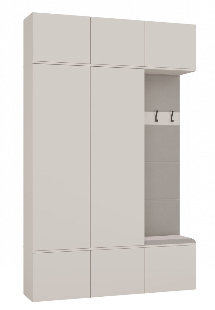 HAGA - Ensemble d’entrée avec 2 armoires + porte-manteau + banc 150x35x238 cm - beige cachemire