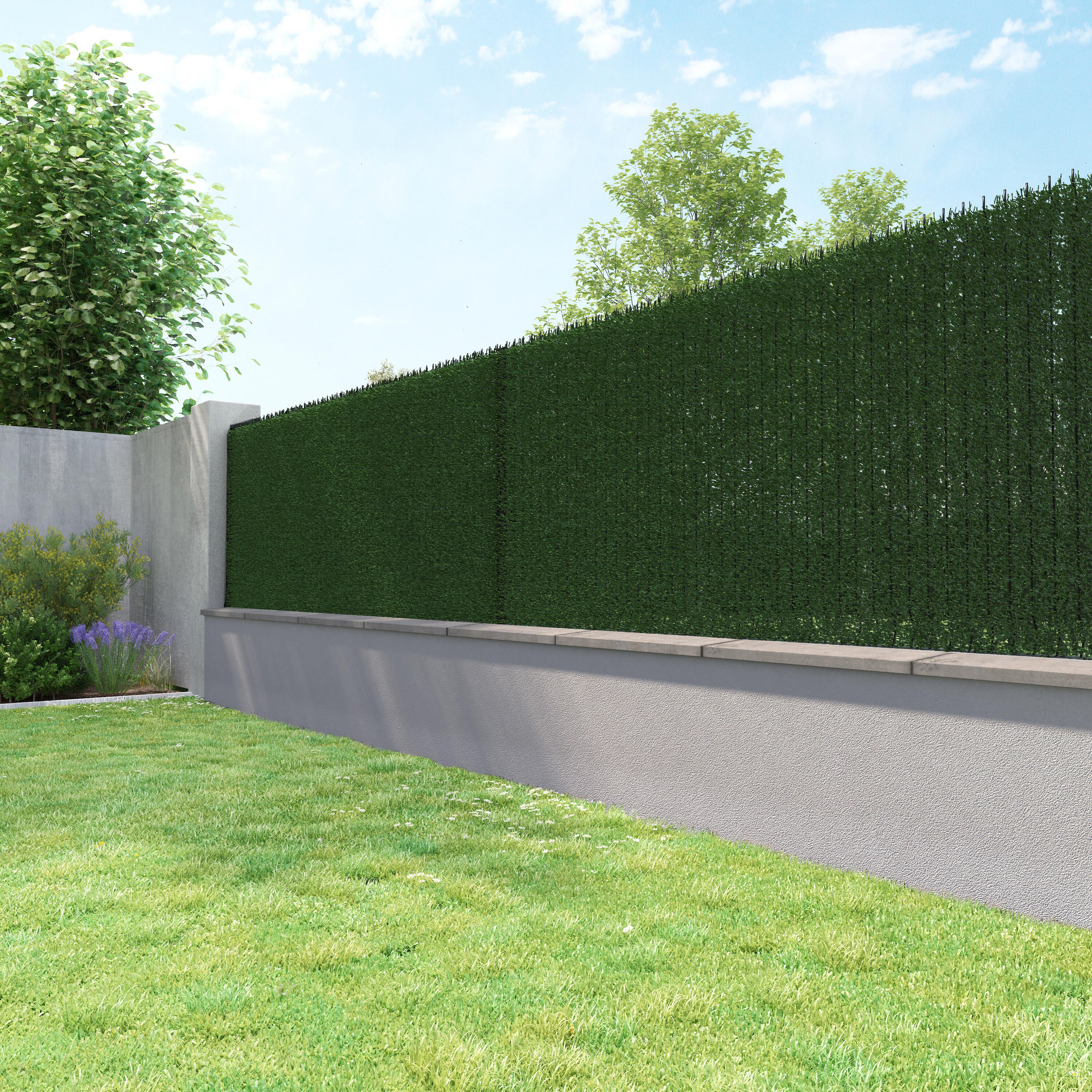 La haie artificielle permettra d'équiper votre clôture en offrant une occultation esthétique imitation thuyas très réussie esthétiquement. Les deux tons de vert permettent un rendu très naturel et une sensation de profondeur très qualitative.