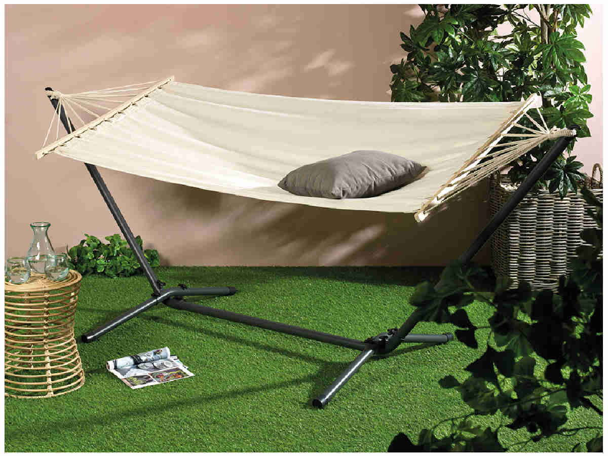 Hamac à barres en polycoton blanc 200 x 100 cm Profitez de moments de détente dans ce hamac à barres en polycoton blanc. Avec une capacité de charge maximale de 120 kg, il est idéal pour une personne ou deux personnes à la fois. Le polycoton est une combinaison de coton et de polyester, ce qui le rend confortable tout en étant résistant aux intempéries. Plus qu'un simple objet décoratif, le hamac à suspendre est surtout la promesse de moments rien que pour soi. Vous pourrez vous détendre tranquillement, lire un livre, rêvasser, écouter votre musique préférée. Installé entre deux arbres ou entre deux murs, il peut convenir aussi bien pour une utilisation intérieure et extérieure. De coloris blanc cassé, ce hamac à barres en polycoton se fondera avec discértion dans votre jardin, comme pour préserver votre lieu de tranquillité. Profitez de moments de détente et de rêvasserie dans ce hamac confortable à suspendre. Pour siester, lire ou pour écouter de la musique, il promet des moments pour soi à profiter sans modération. Utilisation Le hamac à barres en polycoton blanc est idéal pour se détendre à l'intérieur ou à l'extérieur de votre maison. Il peut être suspendu à un support de hamac ou à des arbres avec l'aide de sangles. Il convient également pour une utilisation en camping, en randonnée ou en voyage. Pour profiter au maximum de votre hamac, installez-le dans un endroit calme et détendu et détendez-vous ! Entretien Lavage en machine à 30°C maximum. Séchage à l'air libre, ne pas utiliser de sèche-linge. Repassage à faible température si nécessaire. Évitez l'exposition prolongée au soleil et aux intempéries pour prolonger la durée de vie de votre hamac.