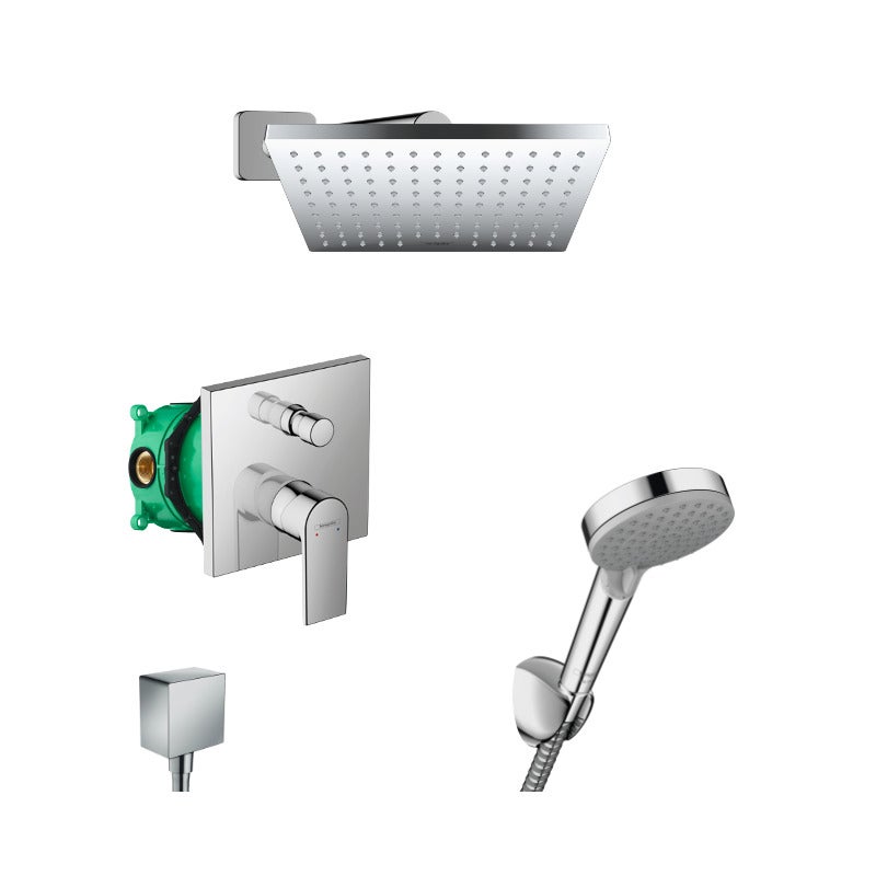 Hansgrohe Vernis Shape Set de douche encastré tout en 1 avec douche de tête 23cm + Douchette 2 jets, Chrome (VernisShape-1)