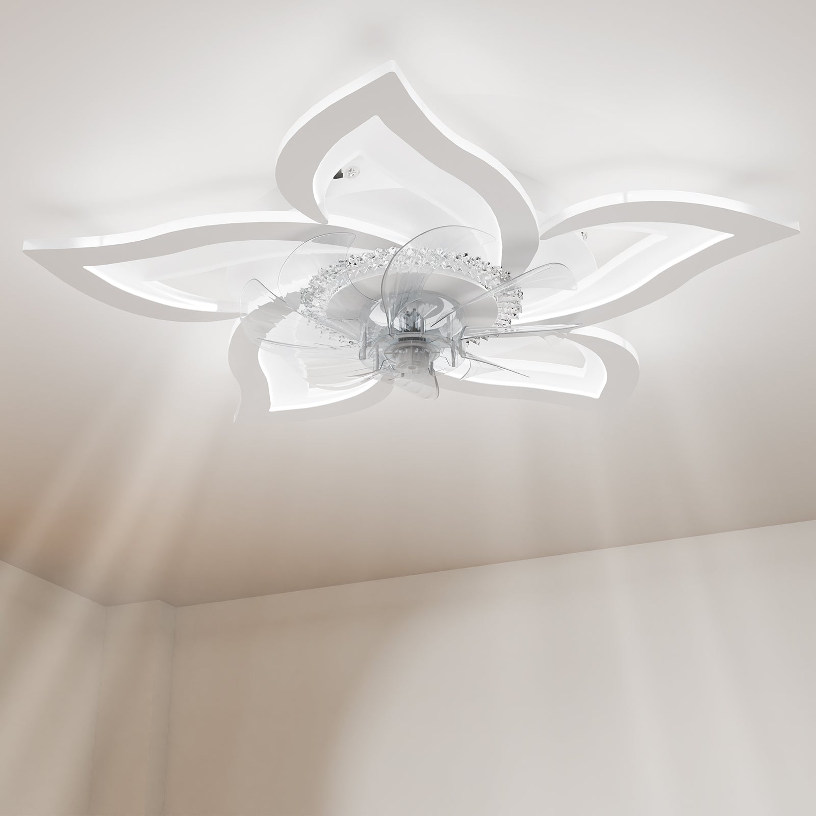 Heilmetz Ventilateur Lumineux Plafond Silencieux, 3 couleurs de lumière et 6 Vitesses de vent, avec Télécommande (Blanc, Fleurs élégantes)