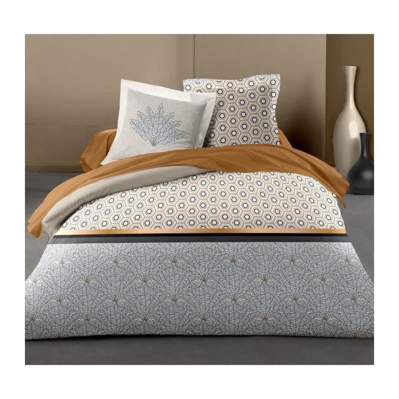HOME LINGE PASSION Parure de couette Louxor - 1 housse de couette 220 x 240 cm + 2 taies 65 x 65 cm - Ocre et blanc