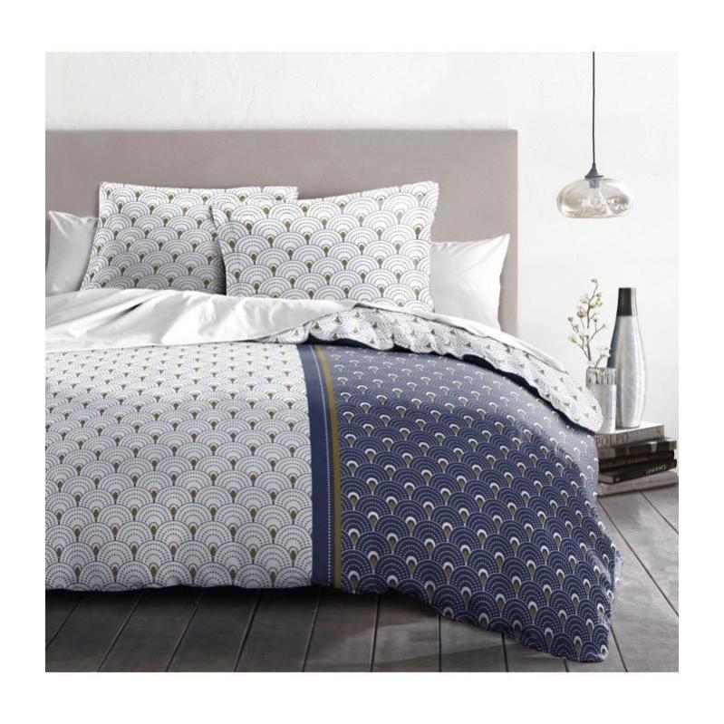 HOME LINGE PASSION Parure de couette Rainbow - 1 housse de couette 240 x 260 cm + 2 taies 65 x 65 cm - Bleu et blanc