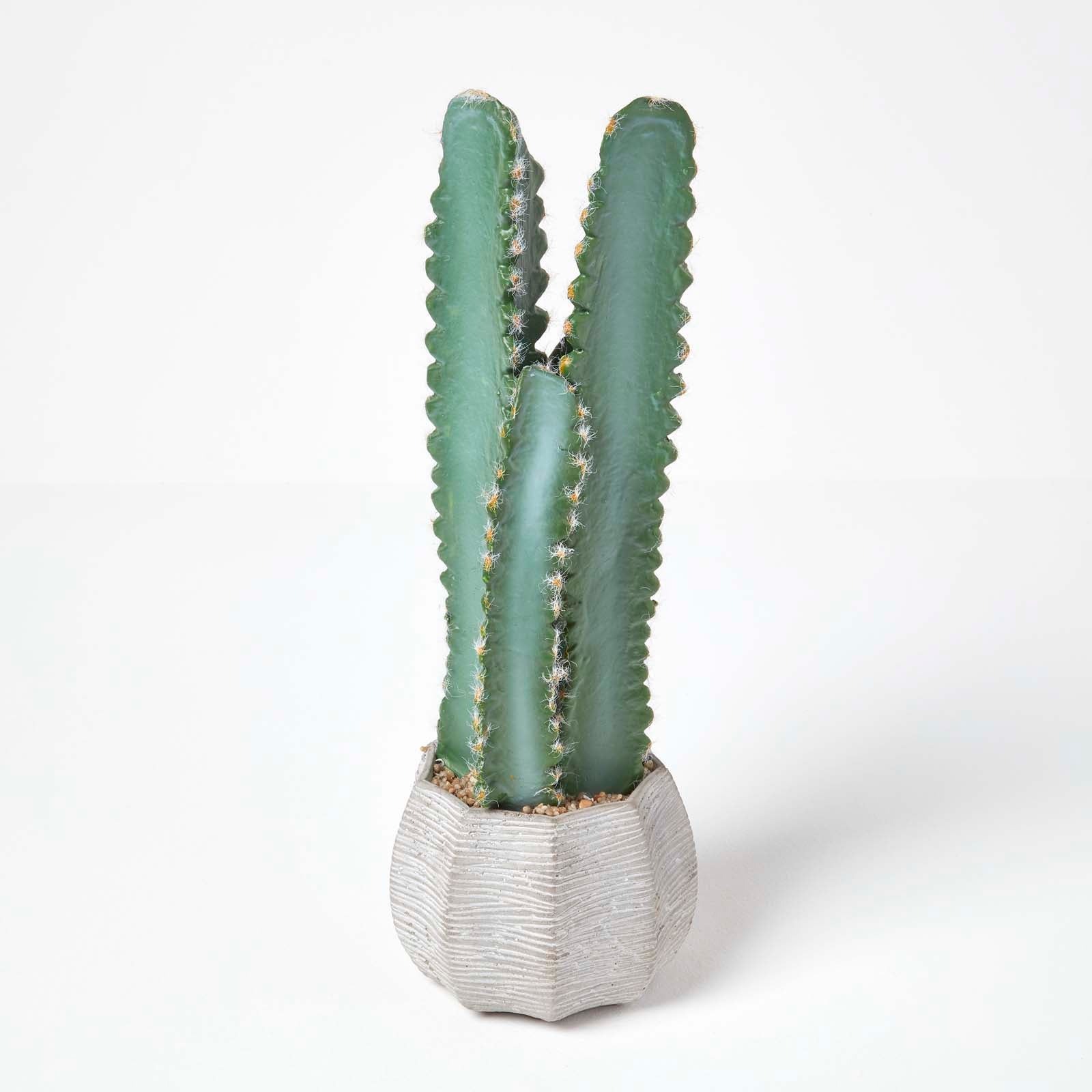 Accessoire déco de caractère, ce cactus artificiel présenté dans un pot original en ciment créera une ambiance chaleureuse et pleine de caractère. Cactus artificiel en pot Plus que jamais au goût du jour, le cactus apporte un peu de piquant dans votre intérieur. Avec ces lignes graphiques, ce cactus colonnaire s'accorde facilement au style contemporain et aux ambiances épurées. Plante d'intérieur artificielle Ne nécessitant pas d'entretien particulier, ce cactus artificiel vous permettra de créer une ambiance ethnique chic sans effort. Homescapes vous propose une large gamme de cactus artificiels à l'apparence plus vraie que nature pour vous accompagner durant de longues années.