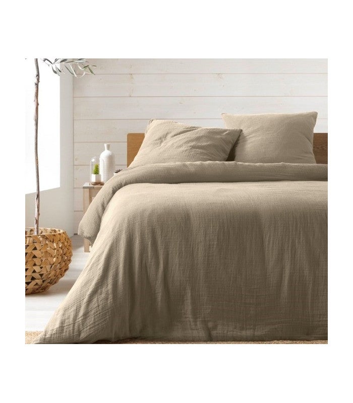 Housse de couette double gaze de coton sable 220x240cm - 220x240cm - Sable