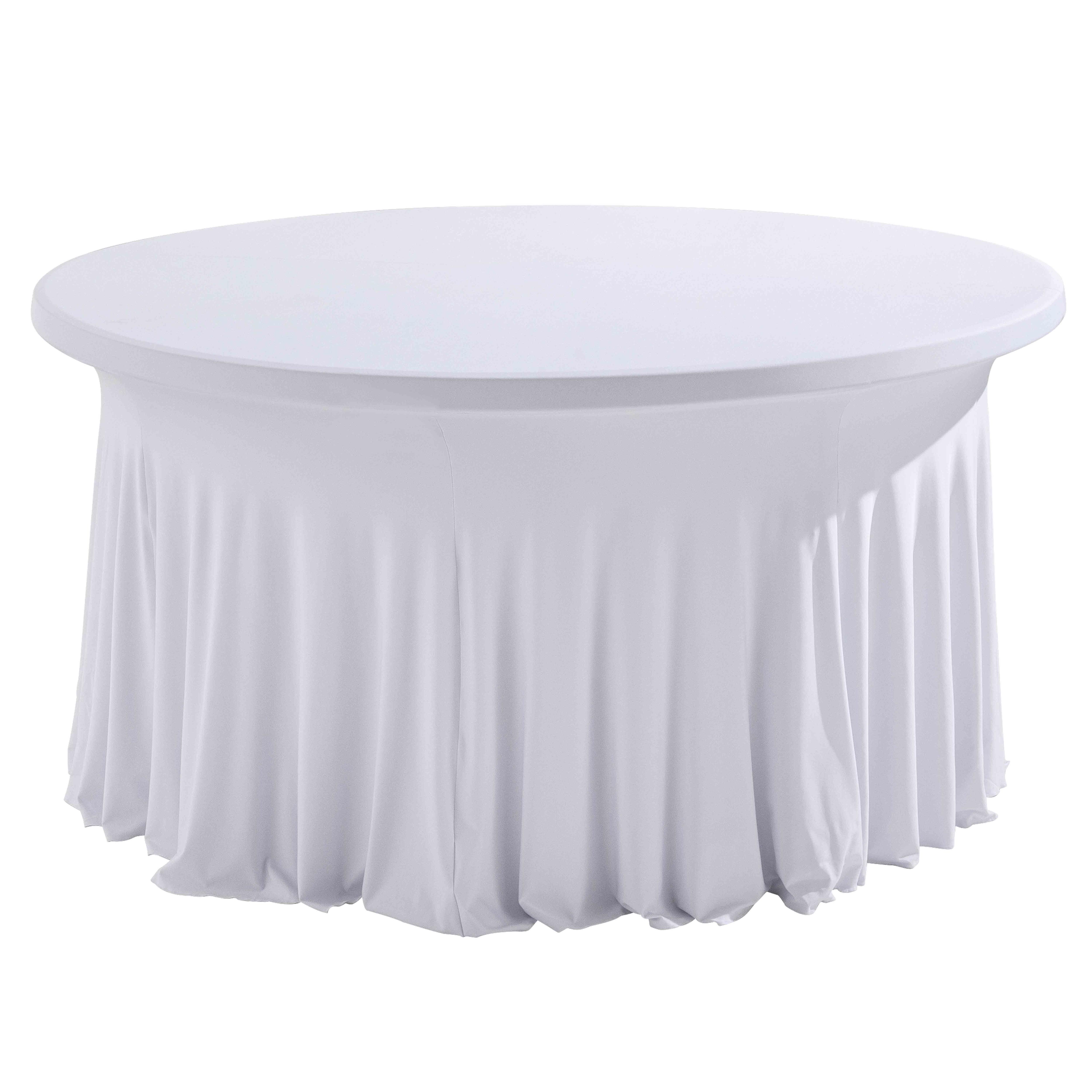 Protégez votre table de réception pliante grâce à cette nappe élastique blanche. Diamétre 180 cm. Lavable en machine.