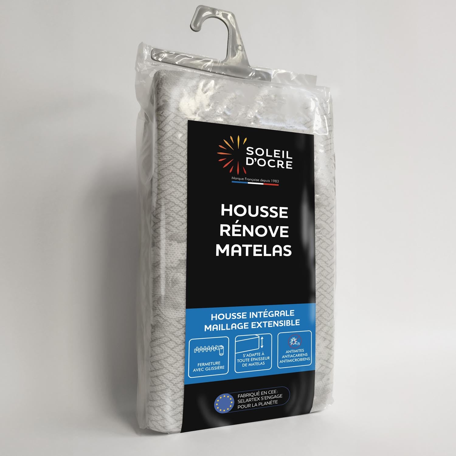 Housse intégrale rénove matelas, protège matelas extensible à double maille. Lit 2 personnes. Fermeture à glissière. S'adapte à toutes les épaisseurs de matelas. Hypoallergénique. Economique et pratique. Couleur: Gris Composition: 100% polyester Dimensions: 140x190 cm Fabrication européenne