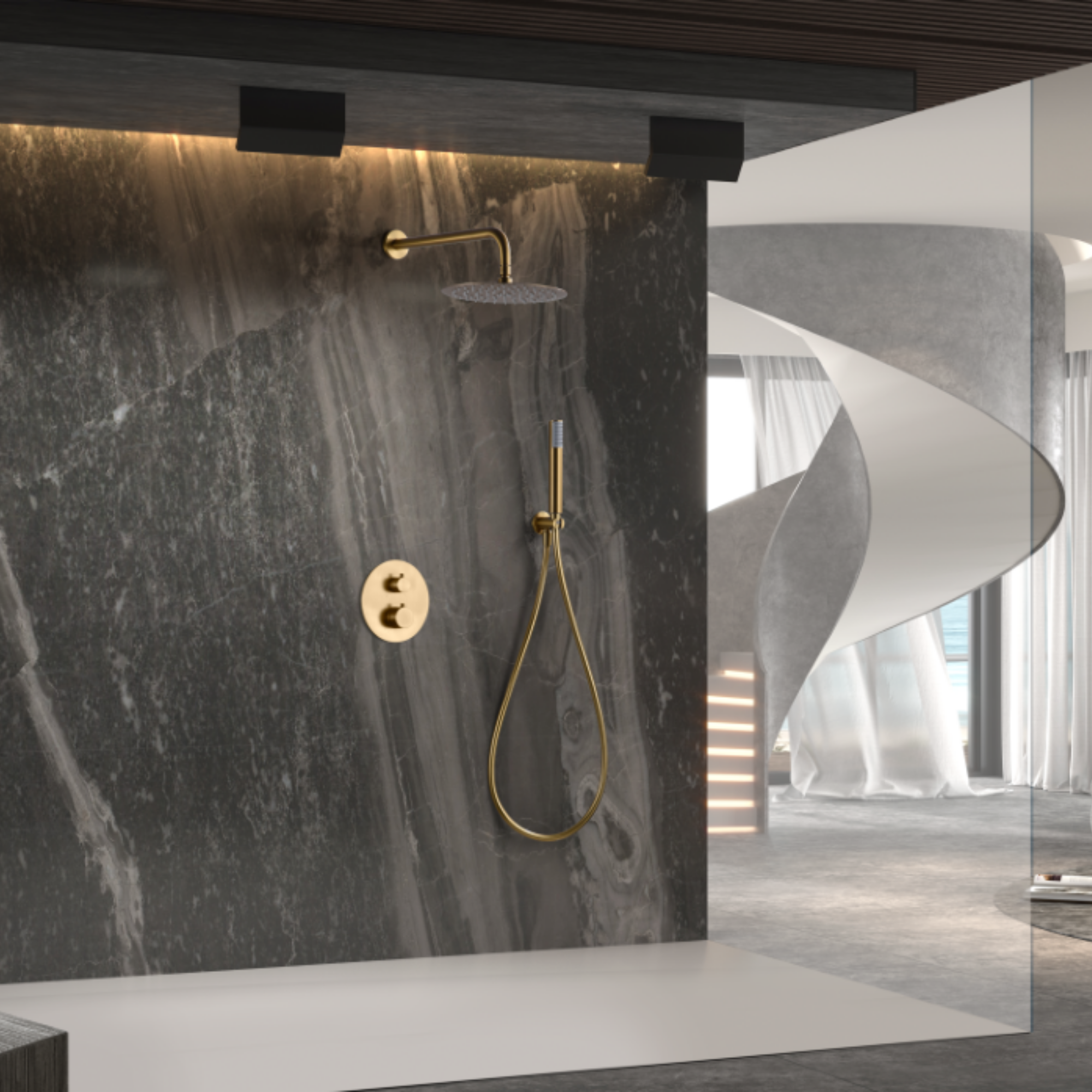 IMEX - Colonne de Douche Encastrée Thermostatique Salle de Bain Or Brossé | Colonne Douche Encastrable Laiton | Douche Anti Calcaire | Série Genova